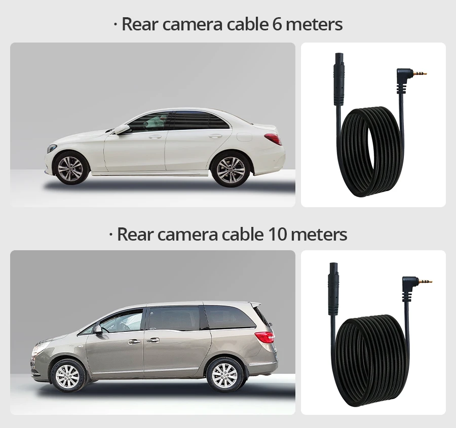 Есть 2 длины задней камеры (до около 10 метров) можно выбрать, подходит для автомобилей различной длины. Пожалуйста, выберите заднюю камеру в соответствии с длиной вашего автомобиля.