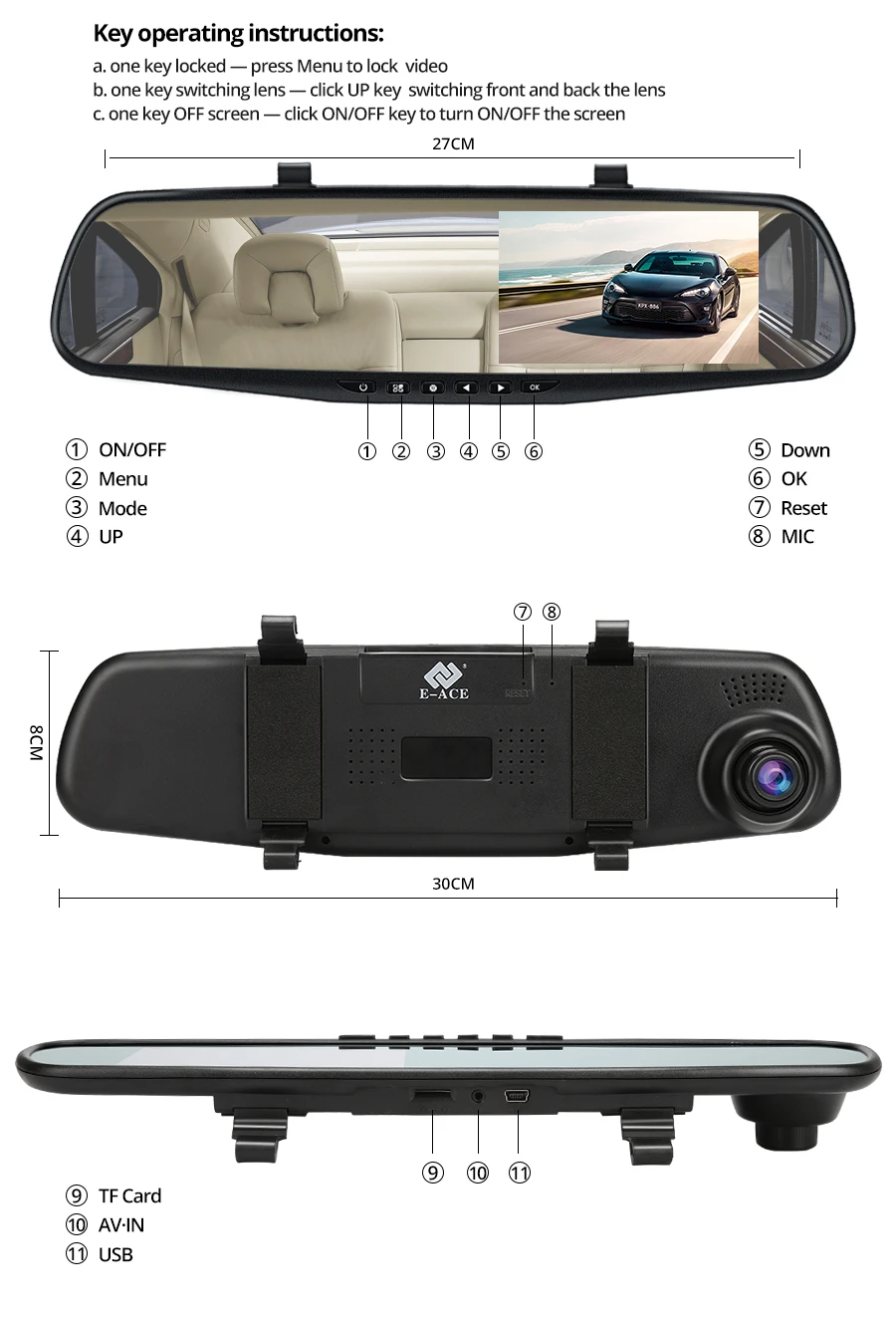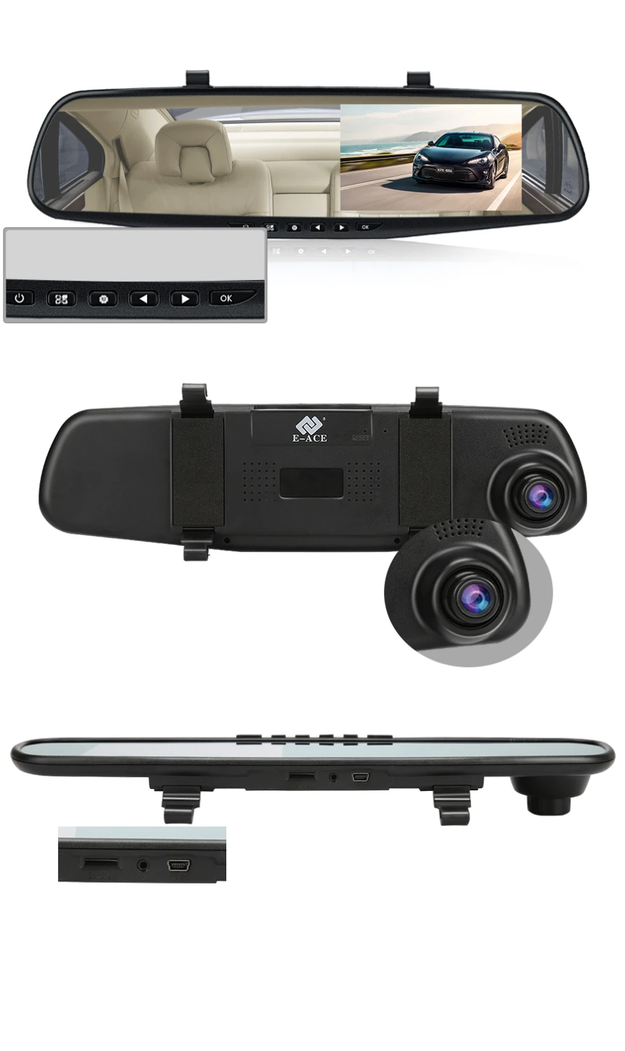 E-ACE Автомобильный видеорегистратор зеркало видеорегистратор Двойной Лен зеркало заднего вида FHD 1080P авто видеорегистратор регистратор с камерой заднего вида