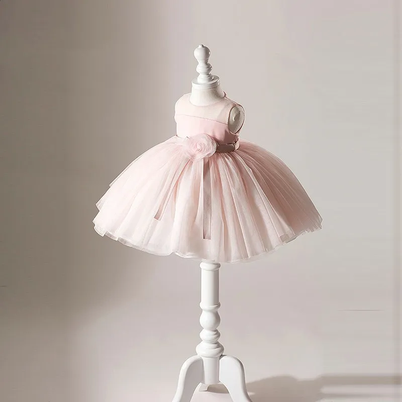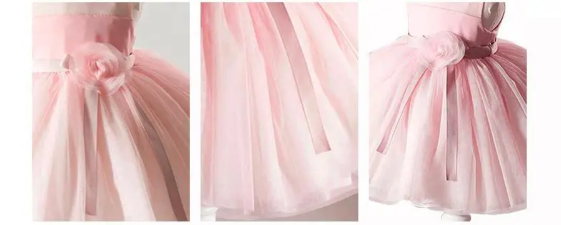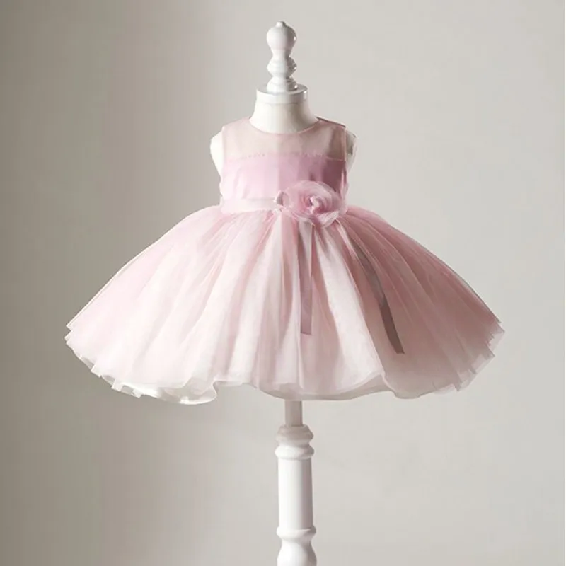 Розовое летнее платье с цветочным узором для маленьких девочек; Платья из тюля для дня рождения с аппликацией для малышей 1 год; Одежда для крещения для маленьких девочек