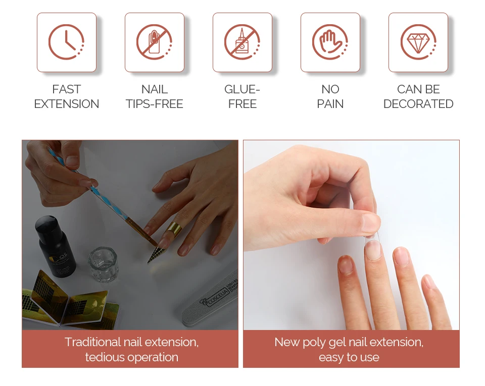 4. Нанесите полигель для ногтей на форму для ногтей, используйте ручку для дизайна ногтей с раствором для скольжения, чтобы сделать гель гладким.