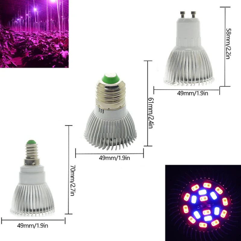 Светодиодная лампа для выращивания 5730SMD E27/ E14 / GU10, 18 светодиодов, полный спектр, теплица, гидропонное растение, лампа для выращивания растений в помещении