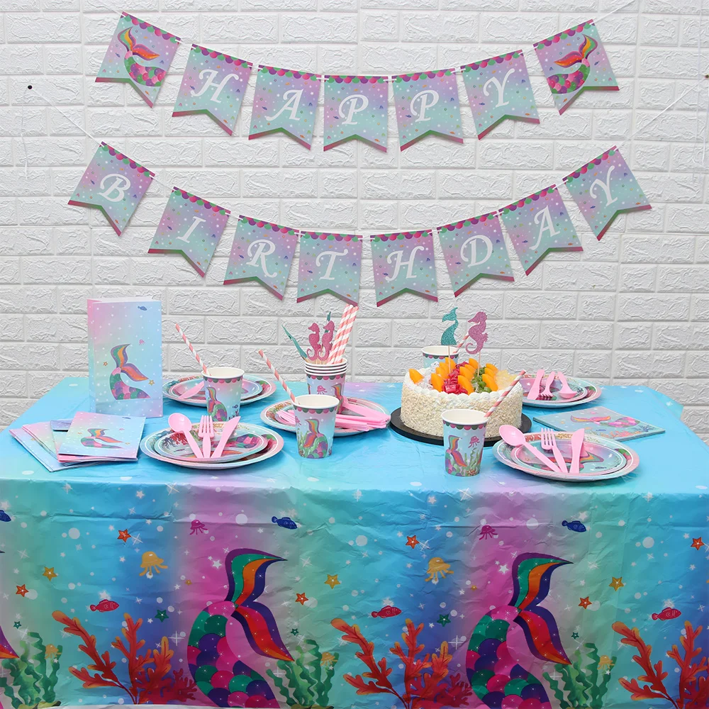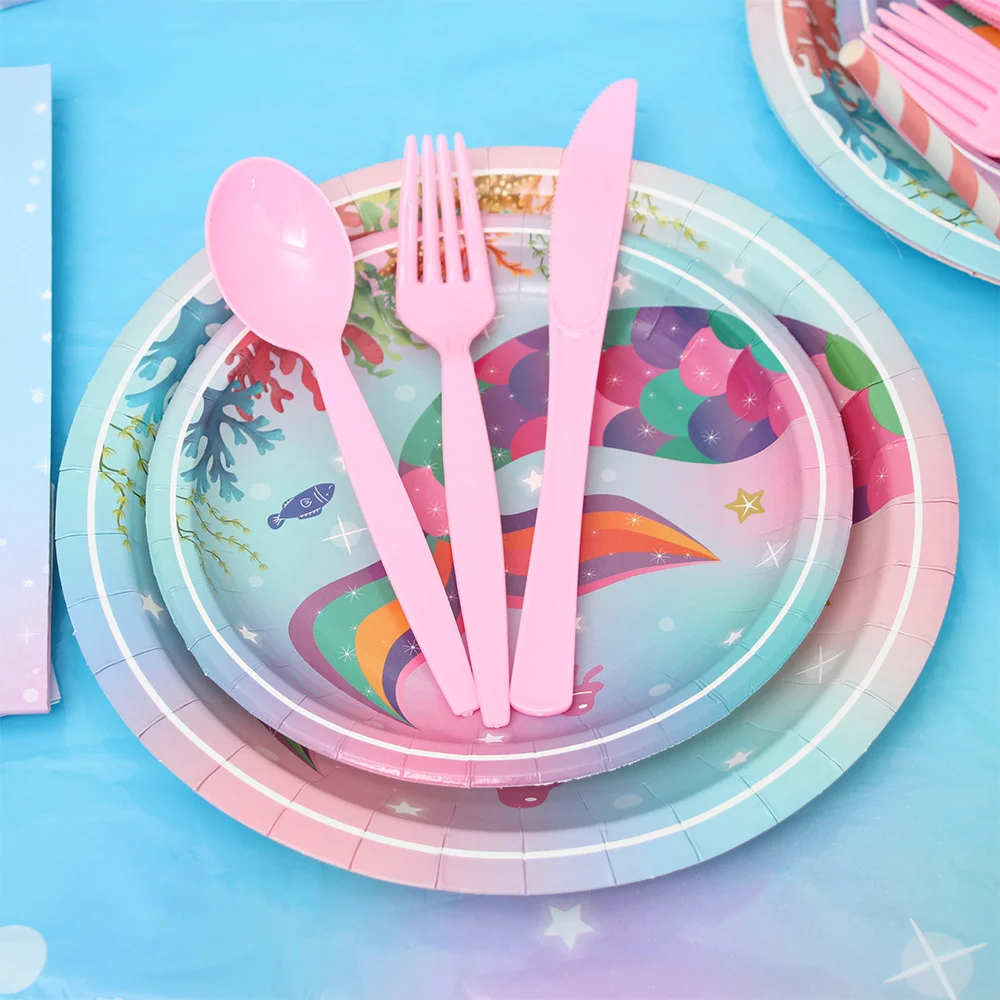 Вечерние костюмы с русалочкой одноразовый набор столовых приборов плакат с русалкой декор для девочек на день рождения и день рождения товары для детского душа подарки