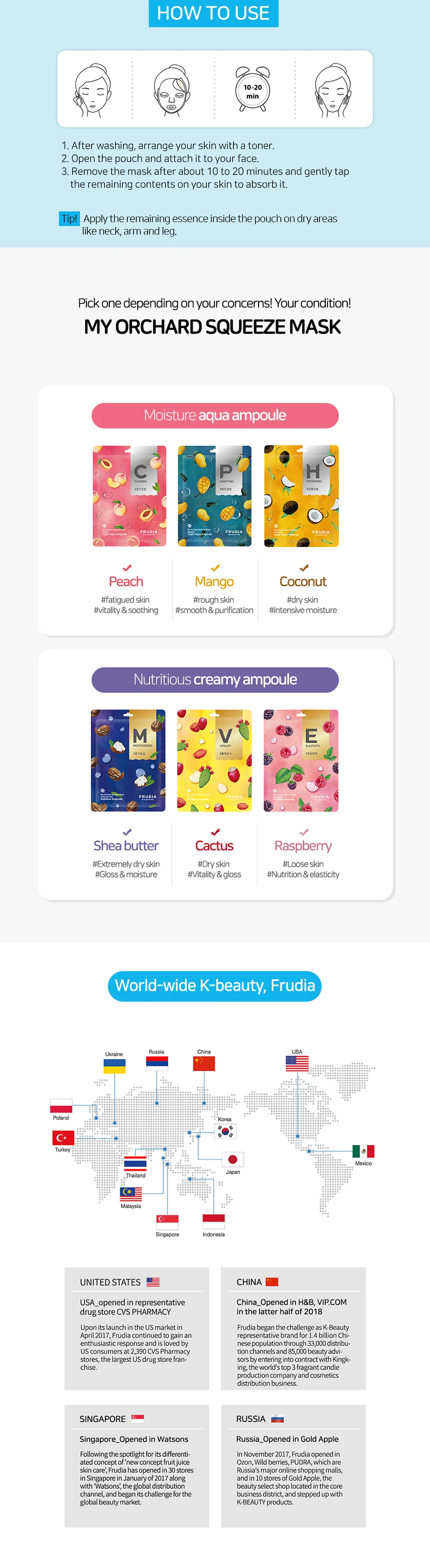 Бренд: FRUDIA Продукт: мой фруктовый сад сжимает маску-кокос Количество: 1 шт. или 5 шт. Страна происхождения: Сделано в Корее Характеристики: ламинат в кокосе и с экстрактом меда, который утолщает жажду кожи с богатым количеством влаги и питательных веществ. Запатентованные успокаивающие ингредиенты) натуральный протектор) успокаивает раздраженную кожу. Сильная гидратация с 5 типами натуральных увлажняющих факторов.