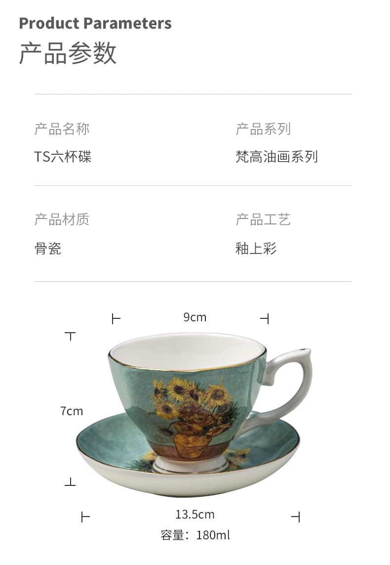 Товар: фарфоровая чайная чашка и блюдце с изображением Ван гогна