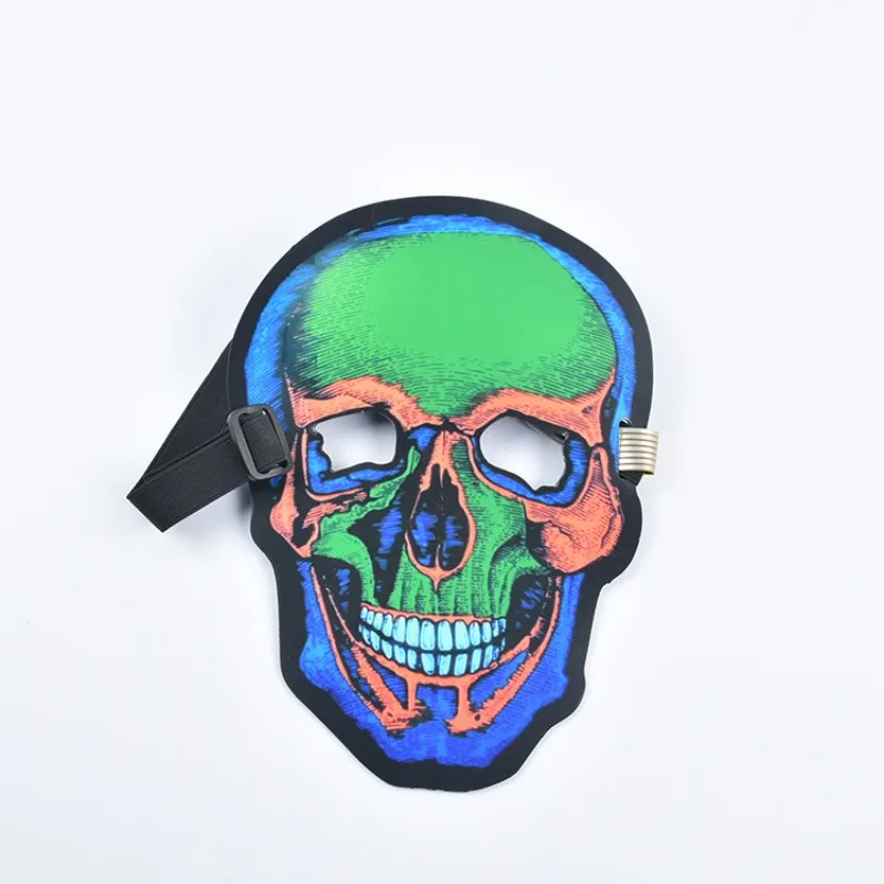 Маска Материал: этиленвинилацетат (ЭВА), EL провода, Пластик Размеры: 28x27 см/11x10,6 батарея Тип: 2 батарейки ААА (не входят в комплект поставки) повод: Хэллоуин, вечерние, праздник, площадь покрытия: форма всего лица: Череп Количество штук: 1 шт.