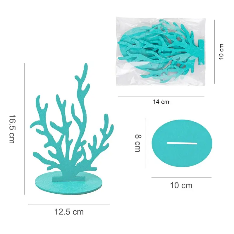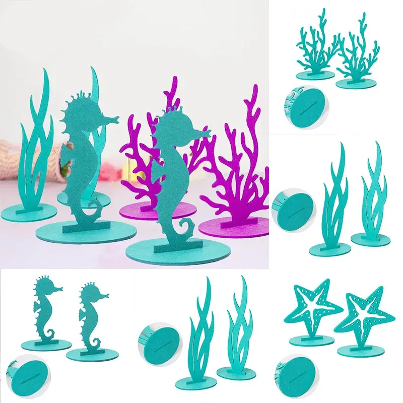 В наличии 4 различных типа океанских тематических стола, которые изготовлены из фетра: морская трава, звездная рыба, морская лошадь и Коралл.