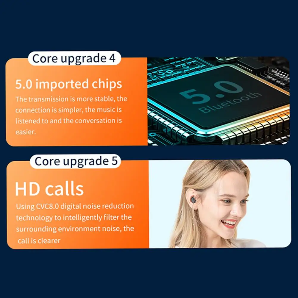 Особенности:1. Практичный в использовании: гарнитура оснащена 6D объемным звуком, 5,0 бинауральным чипом, супер большой емкостью, которая является настоящей беспроводной bluetooth-гарнитурой.2. Хорошее качество: наушники имеют графеновую басовую диафрагму, Hi-Fi высокую звуковую технологию, бескислородную медную звуковую катушку.3. Методы подключения: наушники оснащены одним/двойным бесплатным использованием, и один наушник может использоваться отдельно, и два наушника принесут вам HiFi стерео.4. Высокое качество: наушники оснащены бинауральными вызовами высокой четкости, 5,0 Автоматическое Сопряжение загрузки, CVC8.0 Встроенный активный шумоподавление IC.5. мощная функция: наушники оснащены сенсорным управлением, бинауральным вызовом высокой четкости, воспроизведением паузы, ответом на вызов, отклонением вызова, вызовом Siri, переключением вверх и вниз, автоматическим запуском, автоматическое Сопряжение, интеллектуальное шумоподавление, Отсутствие задержек в игре, водонепроницаемая конструкция IPX7.Характеристики:Модель продукта: bluetooth-гарнитура G5Версия Bluetooth: V5.0Версия шумоподавления: CVC8.0Работа: сенсорныйМатериал наушников: материал ПКРасстояние Bluetooth: около 10 метровВодонепроницаемый: IPX7 водонепроницаемыйСпособ подключения: одиночное/двойное использованиеДисплей питания: светодиодный цифровой дисплейЕмкость одного уха: 50 мАчЕмкость зарядного отсека: 3500 мАчАвтозапуск: ПоддержкаАвтоматическое Сопряжение: ПоддержкаСрок службы: около 120 часов (требуется использование с зарядным отсеком)Время работы в режиме разговора: около 150 часов (требуется использование с зарядной кабиной)Время воспроизведения: около 280 часов (требуется использование с зарядным отсеком)Зарядка гарнитуры: около 40 разФункции: сенсорное управление, бинауральный вызов высокой четкости, пауза воспроизведения, ответ на вызов, Отклонение вызова, вызов Siri, переключение вверх и вниз песни, автоматический запуск, Автоматическое Сопряжение, интеллектуальное шумоподавление, никаких задержек в игре,Применимо: умный подходящий телефон, планшет (Android/подходит для iOS)Упаковочный лист:1x G6 гарнитура1x зарядный кабель1x Руководство пользователя 1х упаковочная коробка