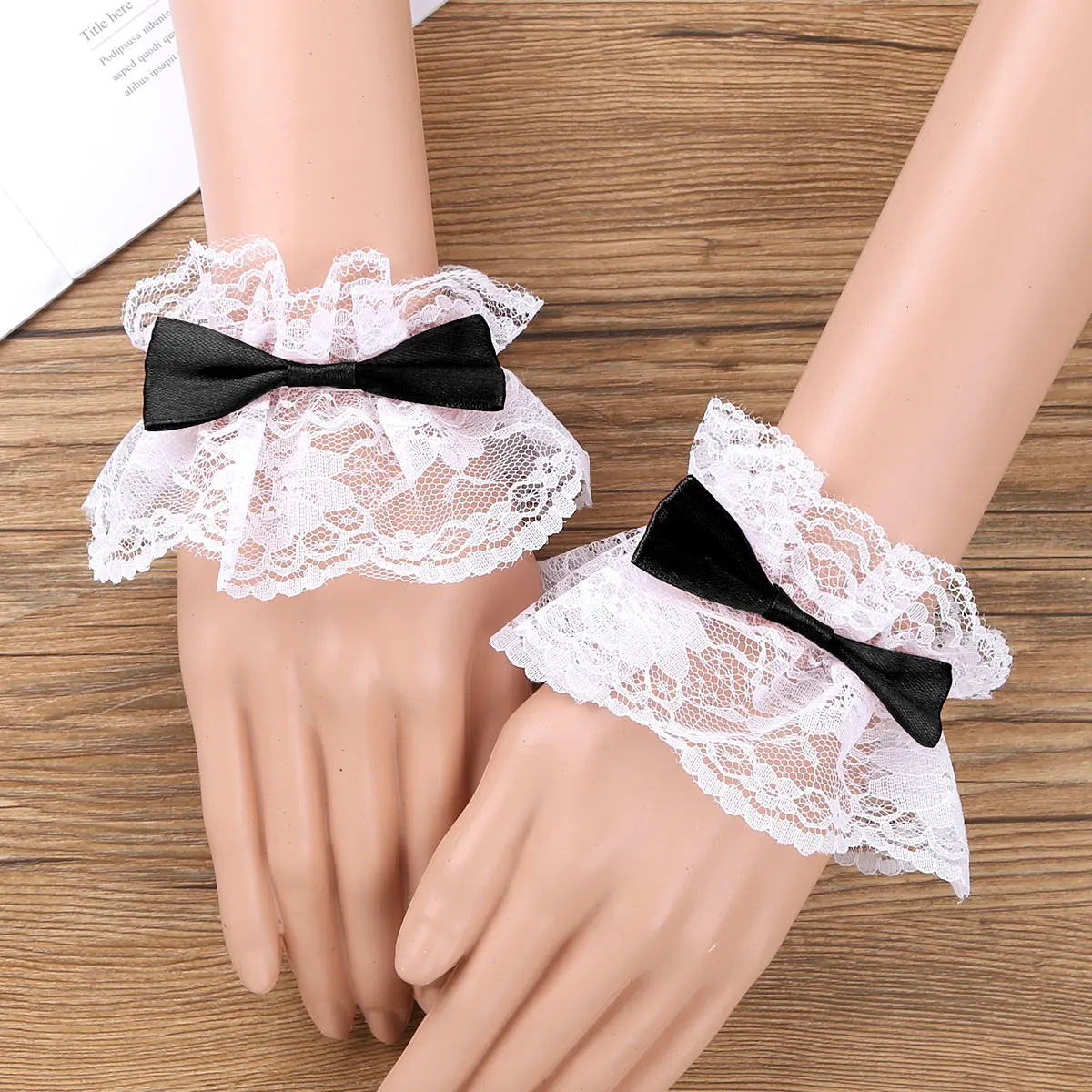 Сексуальные кружевные банты, рукава на запястье, для женщин и девочек, косплей, каваи, аниме, гофрированный Цветочный браслет, костюм, вечерние, необычные, накладные манжеты на запястье
