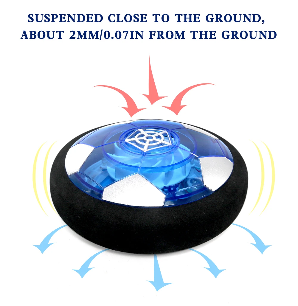 3. Светодиодный фонарик внутри добавляет больше волнения в ночную игру. Дети будут притягиваться к светодиодам, когда они будут пинать парящий футбольный мяч. Этот воздушный шар может скользить по любой гладкой поверхности, такой как ковёр с низким ворсом или лиственных пород, в помещении, где дети могут сжечь всю свою избыточную энергию.