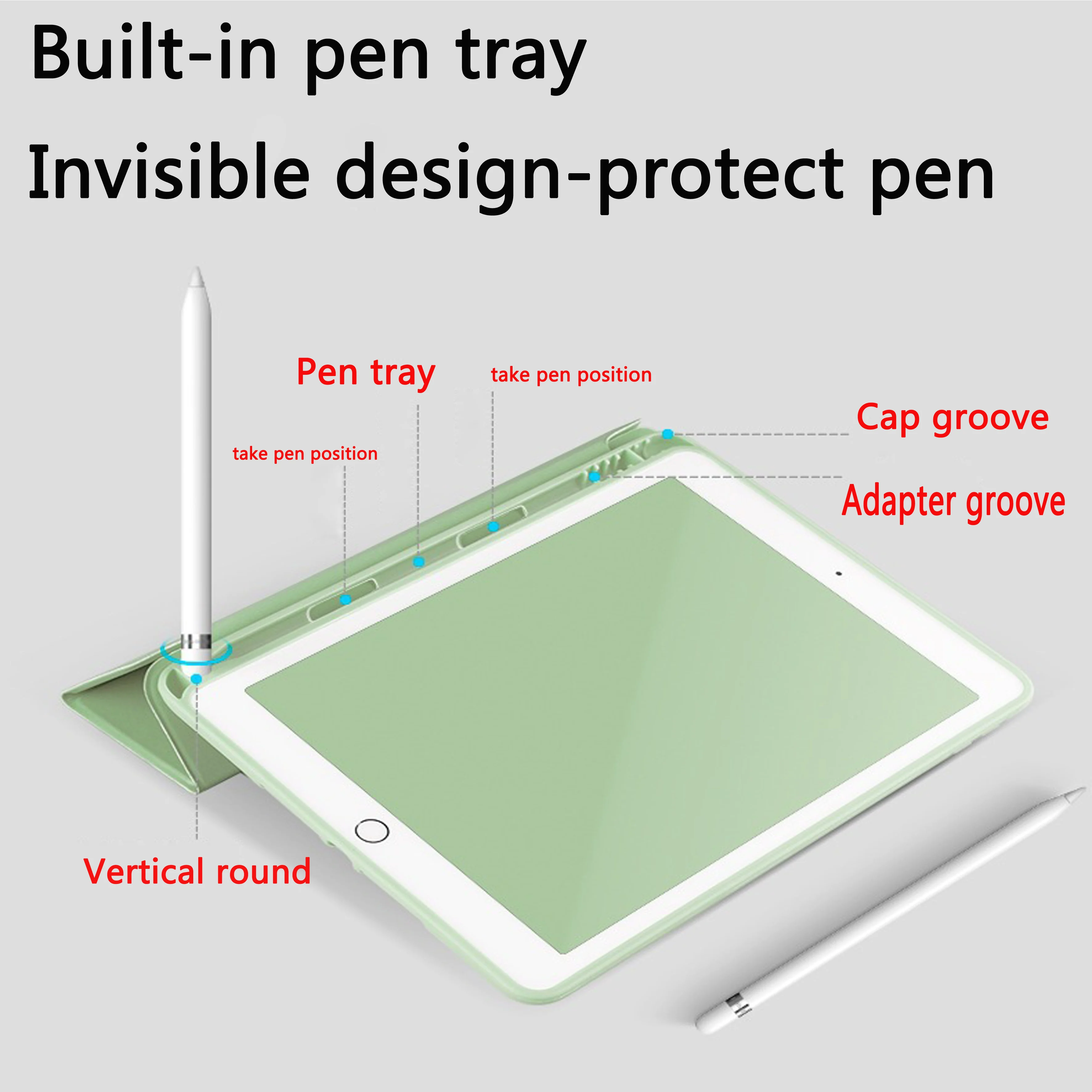 Передняя трехслойная с держателем для карандашей умная Защитная крышка изготовлена из полиуретана, внутренняя и внешняя стороны задней оболочки имеют мягкое резиновое покрытие, которое хорошо ощущается на руках и не скользит. Это цельный чехол, передняя и задняя не разделены