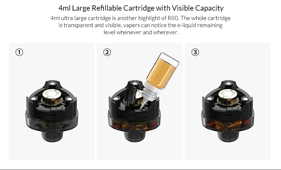 Вы когда-нибудь представляли, что вейп-устройство может служить как модулем для стручков, так и обычным модом? Теперь это стало возможным с R80. Благодаря одной ячейке 18650 с максимальной выходной мощностью 80 Вт и дисплею 0,96 дюйма со сменой цветов, R80 выходит за рамки вашего воображения. Более того, сменные катушки с регулируемой системой воздушного потока станут еще одним важным преимуществом R80. Более быстрая зарядка, видимая большая емкость, гуманизированная крышка открыта, R80 будет вашим приоритетом независимо от внешнего вида или функций.