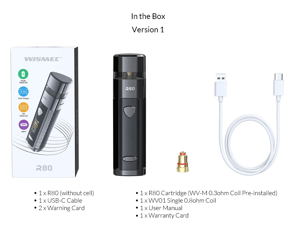1 картридж R80 (предварительно установлена катушка WV-M 0,3 Ом)