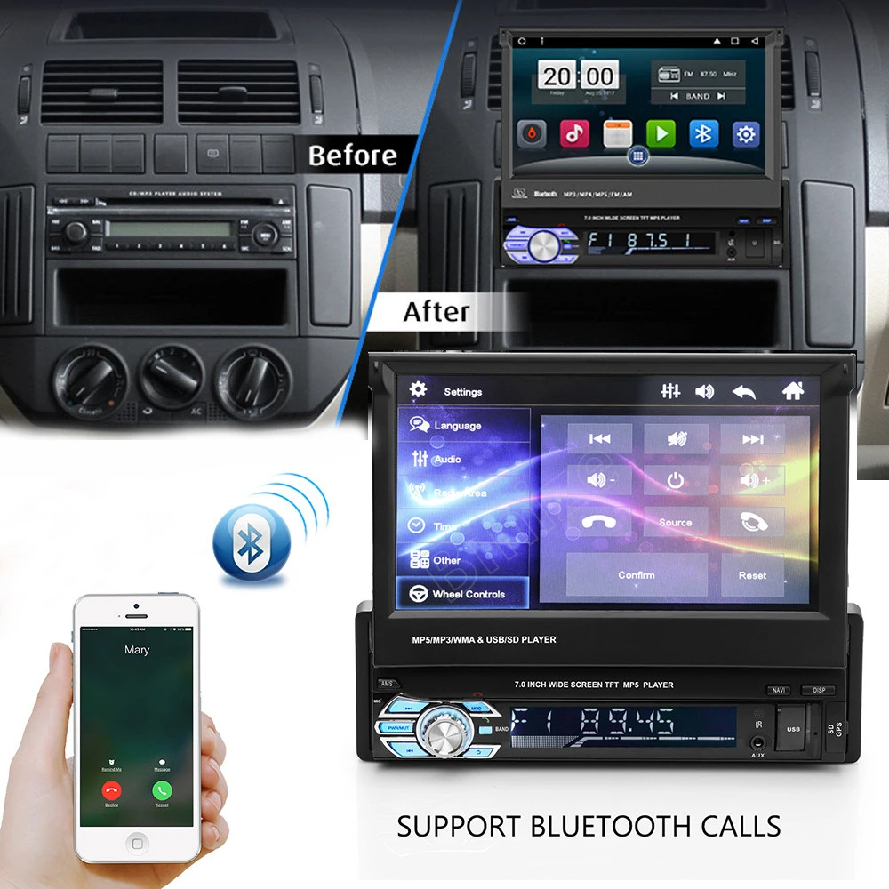 1 Din 7 дюймов Автомобильный радиоприемник андроид 9,1 Am/Gps Wifi Fm помощи при парковке 1024*600 Px 1Din Авто Bluetooth Карро стерео -Подключение к смартфону, зеркальная связь с двойным управлением -Полностью Емкостное управление сенсорным экраном -Встроенный Bluetooth, громкая связь, телефонная книга, A2DP для отпаривания музыки телефона на радио. -7ми-дюймовый 1024*600 супер высокой четкости цифровой экран -- Система Android 9,1 -- 1,3G 4 ядра -Встроенный Wi-Fi -- Вход камеры заднего вида -Встроенный усилитель мощности 4*45 Вт -- Встроенный FM -Один задний USB/один передний usb-вход -- Управление рулевым колесом -- Фронтальный вход A/V -- CH задний видеовыход -CH задний аудиовыход/выход -- Дистанционного Управление