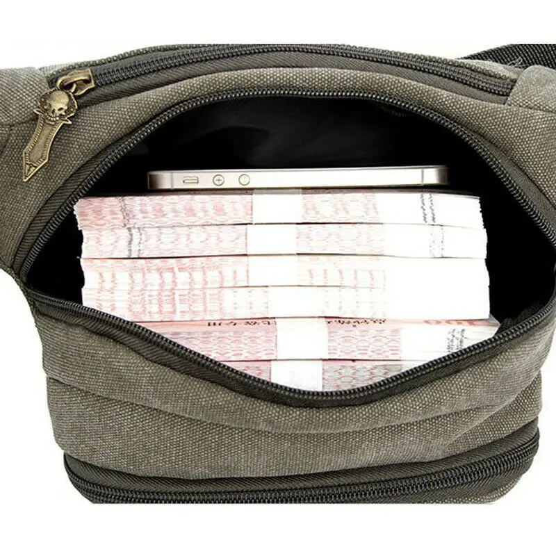 100% новый и высокое качество Материал: парусина Цвет: черный, зеленый, хаки, синий Средней мощности дизайн Многофункциональные карманы на молнии Очень подходит для прогулок по магазинам или путешествий С многокарманным дизайном, лучше расположить, чтобы соответствовать классификации ЗАБАВНЫХ ПРЕДМЕТОВ С регулируемым ремешком, так что вы можете использовать с плечом висит или талии висит с более удобным Может использоваться в качестве поясной сумки, сумки через плечо или рюкзака Размеры/педикюра задняя часть: около 19*13*9 см/7,5*5,1*3,5 дюймов Посылка включает в себя: 1 х Спортивная холщовая поясная сумка