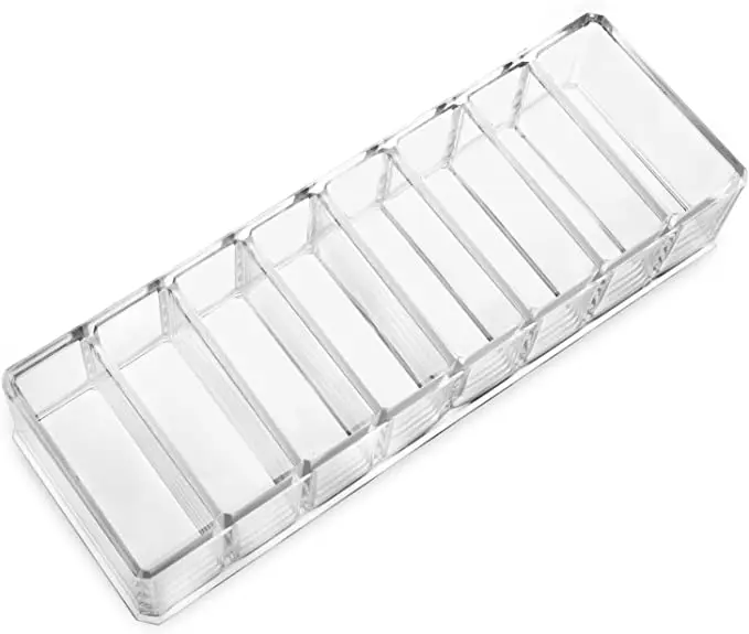 Большой размер-9,8x3,5x2 дюйма (24x8,7x4 см), каждый внутренний куб измерения при температуре не выше 3,15x1,18 дюйма (8*3 см). Организует 8 индивидуальных компактных косметических средств. Прочная конструкция-этот профессиональный компактный органайзер состоит из очень прочного акрилового материала с отличной стойкостью к атмосферным воздействиям и намного прочнее, чем стекло, что обеспечивает его прочность и безопасность от травм и поломок. Многофункциональное использование-8 мест для хранения идеально подходят для хранения небольших композиций, таких как MAC Blushes (Melba), Sephora, Clinque Powers, theBlam Bronzers, Too Faced, Makeup Forever, NARS, MAC, MSF's, e.l.f. И многое другое. Никогда не выходит из стиля-гладкий дизайн в чистоте. Организуйте громоздкие ящики и экономьте место на столешнице с туалетным столиком. Идеальный блок для хранения макияжа для пользователей и профессионалов.