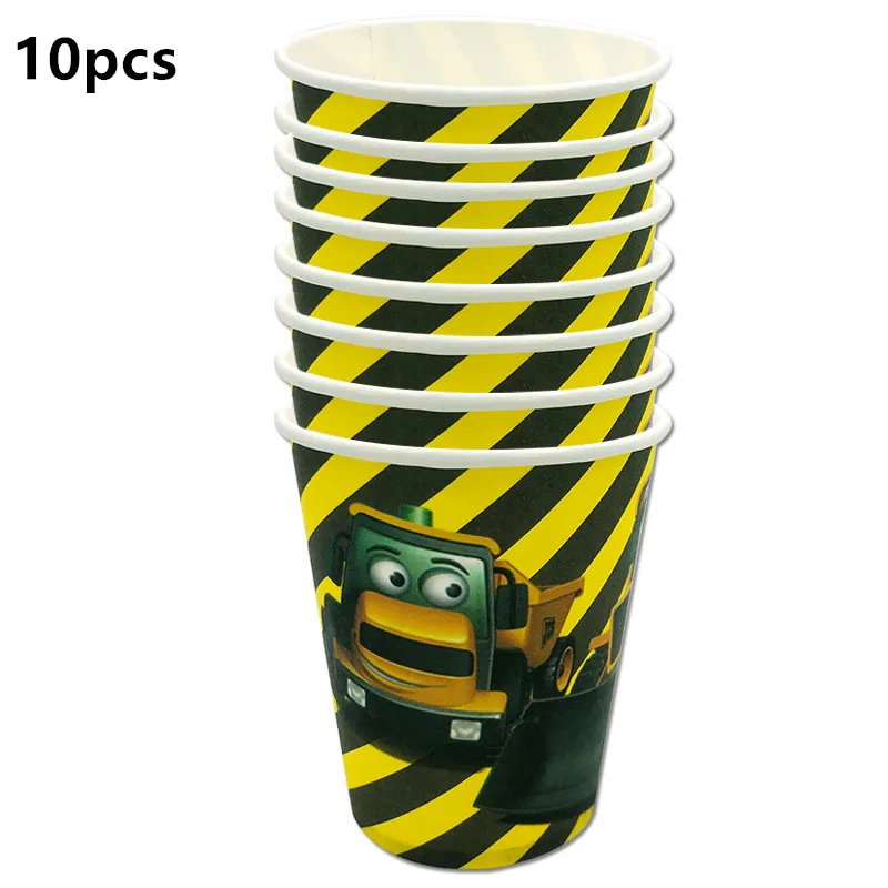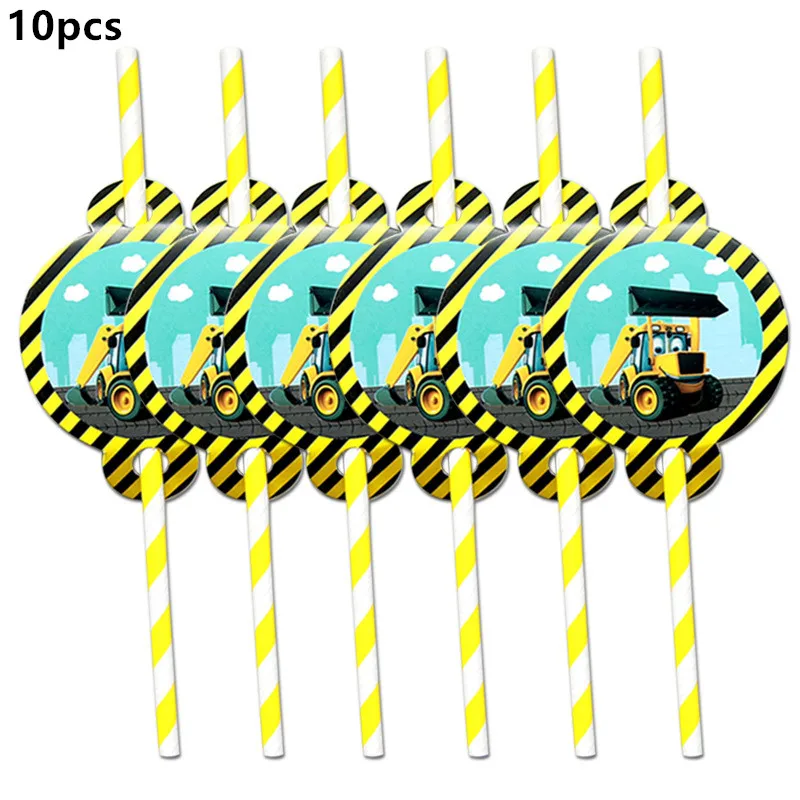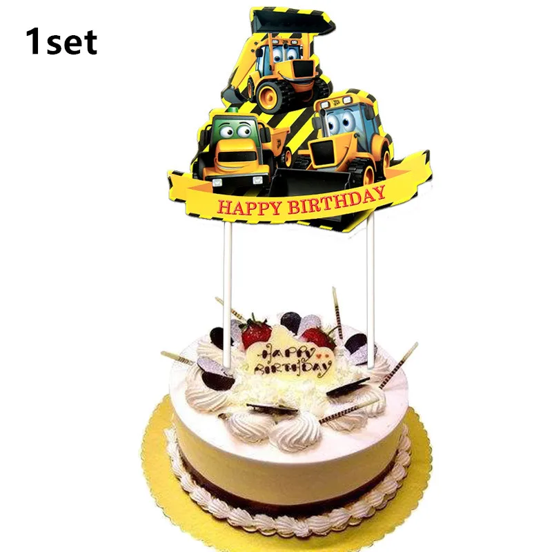 Строительные грузовики день рождения партии одноразовые столовые приборы набор тарелок соломенные буквы Трактор Автомобиль Баннер Дети Мальчики партии поставки