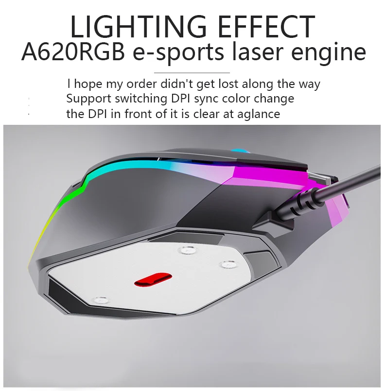 Обработка поверхности: матовый материал Игровой Двигатель: двигатель A602RGB DPI файл: 1200-1600-1800 Скорость движения: 80 дюймов/секунд Скорость отклика: 80IPS Провод: 1,42 ± 0,1 м Количество клавиш: 6 клавиш (возможность редактирования) Подсветка: 4 цвета, дышащая Интерфейс: USB Вес: 140 ± 10 г Размер: 128x68x42 мм (± 5 мм)