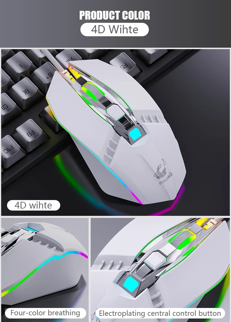 Проводная компьютерная игровая мышь 1800 DPI, 4 цвета с подсветкой, эргономичный дизайн, Макросъемка, мыши для ноутбука, настольного компьютера, геймера