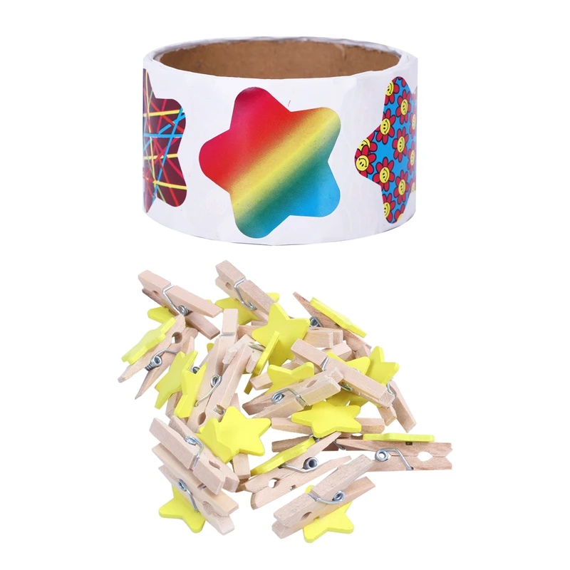 120 шт. DIY Аксессуары: 1 рулон 100 шт. Звездные наклейки и 20 шт. мини-деревянный зажим