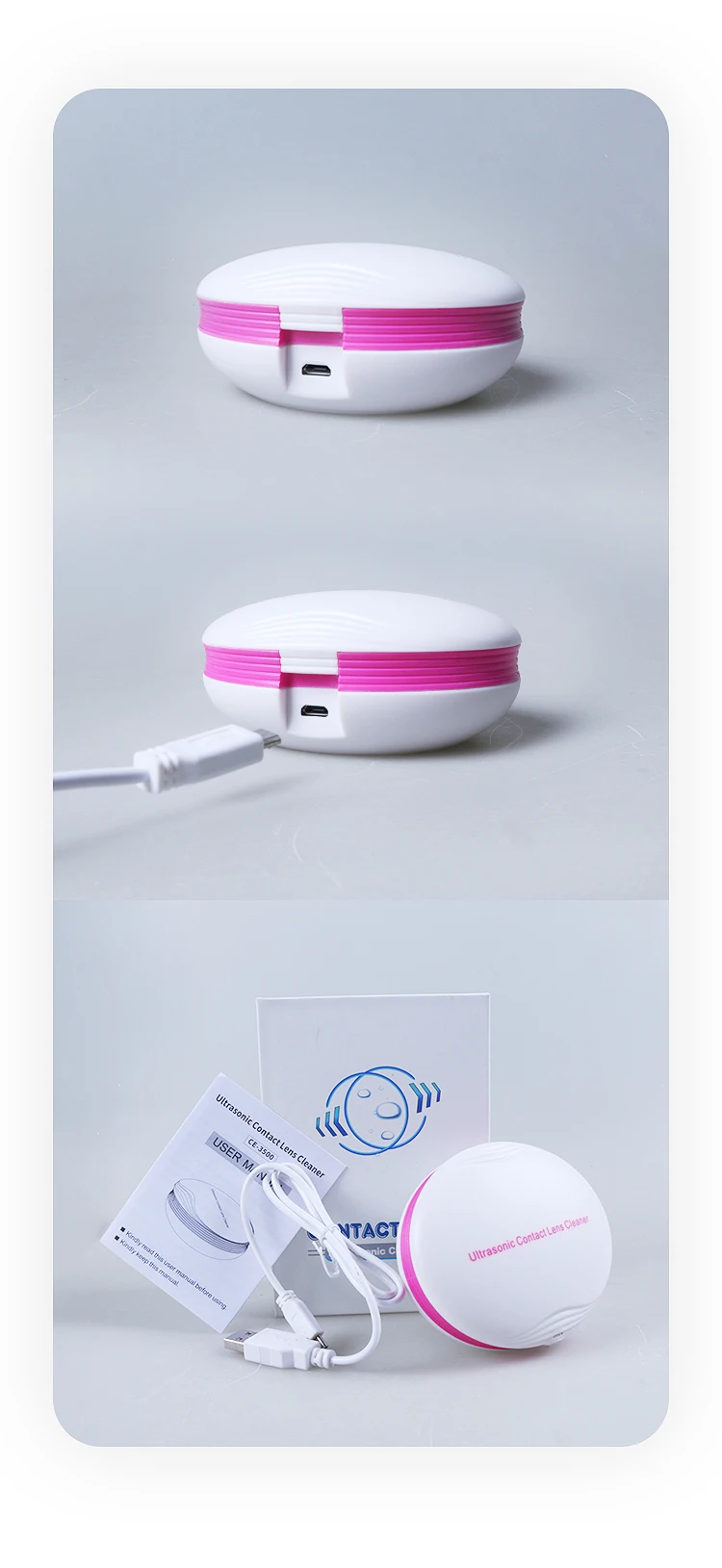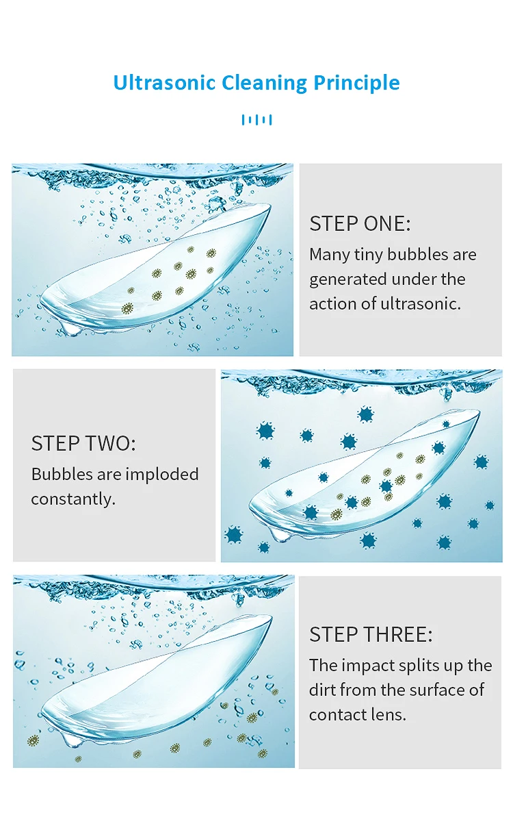 С нашей ультразвуковой очистительной машиной, ваши контактные линзы будут чистыми и зрение будет ярким 1) Портативный размер с Умной формой 2) 3 вида цветов на выбор 3) легко заряжать-USB порт 4) тщательная очистка за 2 или 5 минут 5) SS316 бак