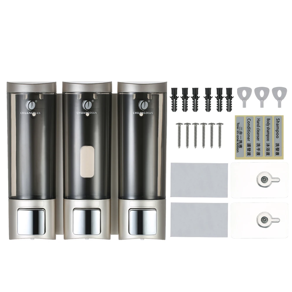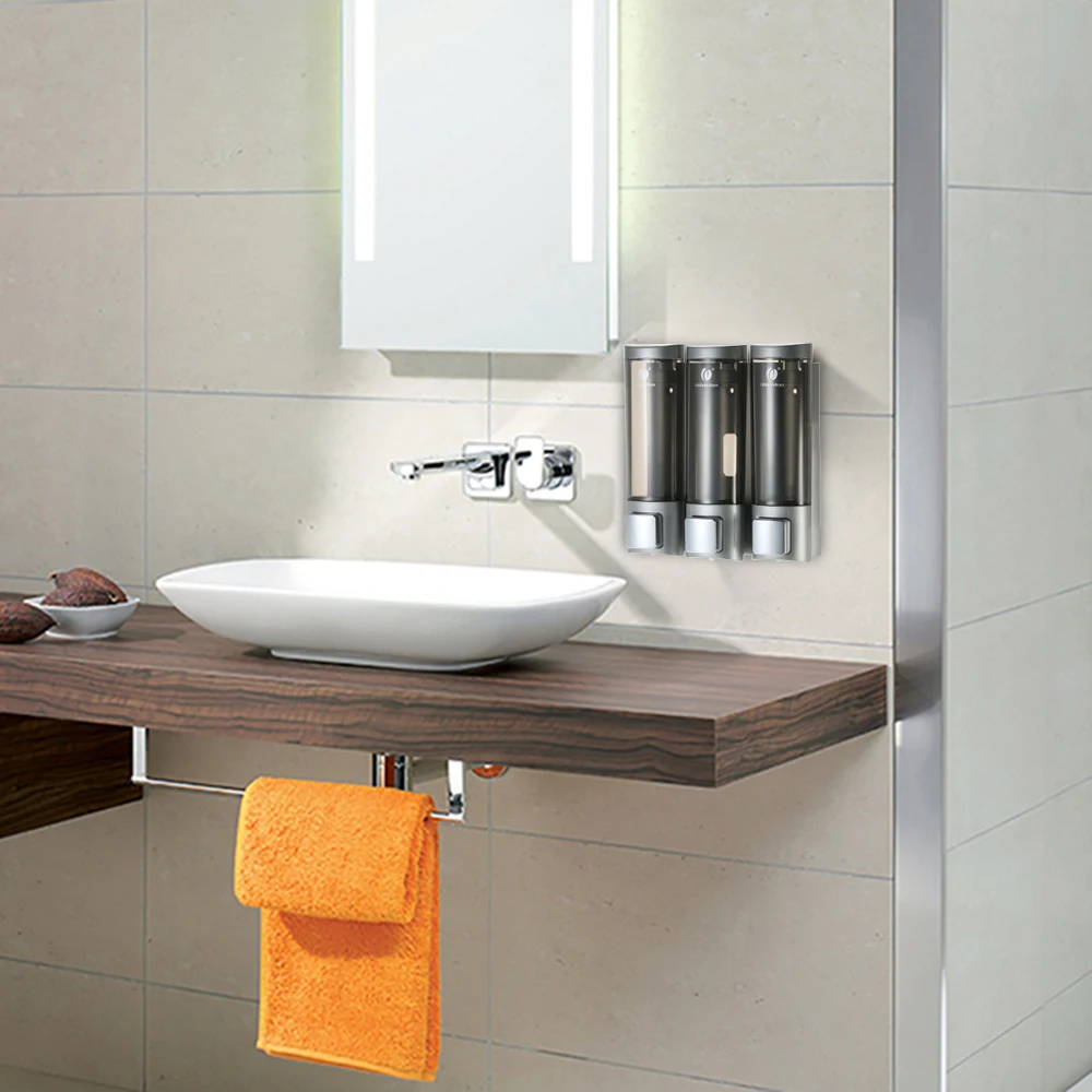 Трехкамерные диспенсеры для жидкого мыла изготовлены из нового и хорошего качества ABS, который является прочным, компактным и гладким. Насос предназначен для легкой откачки одной рукой. Разделенная насадка для жидкостей идеально подходит для предотвращения протекания и отходов. Идеально подходит для отеля, торгового центра, офисного здания, ванной комнаты, туалета, школы, детского сада, банков и других общественных мест.