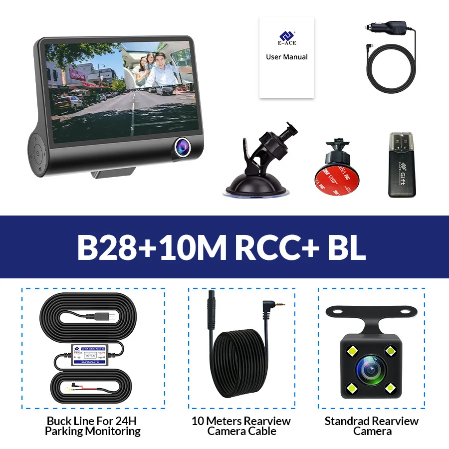 B28 Автомобильный видеорегистратор с 3 объективами камеры