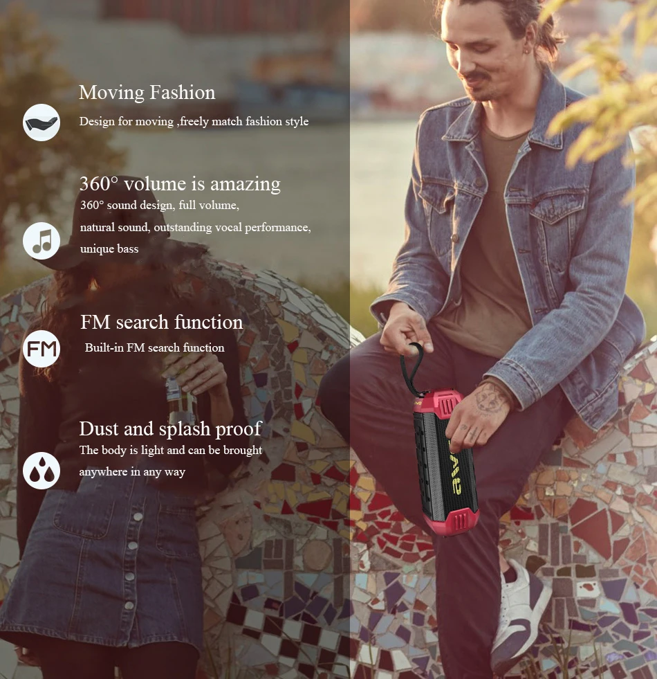1. Дизайн для движения, свободно сочетается с модным стилем. 2. Звук 360 °, полная громкость. 3. Встроенная функция FM поиска 4. Корпус-светильник, который может быть доставлен в любом месте.