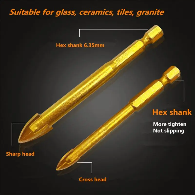 Сверло для стекла с шестигранным хвостовиком 1/4 ", титановое керамическое сверло 6, 8, 10, 12 мм