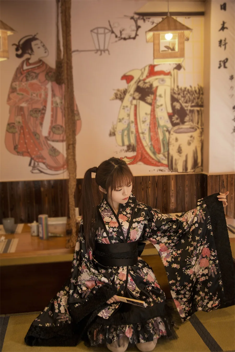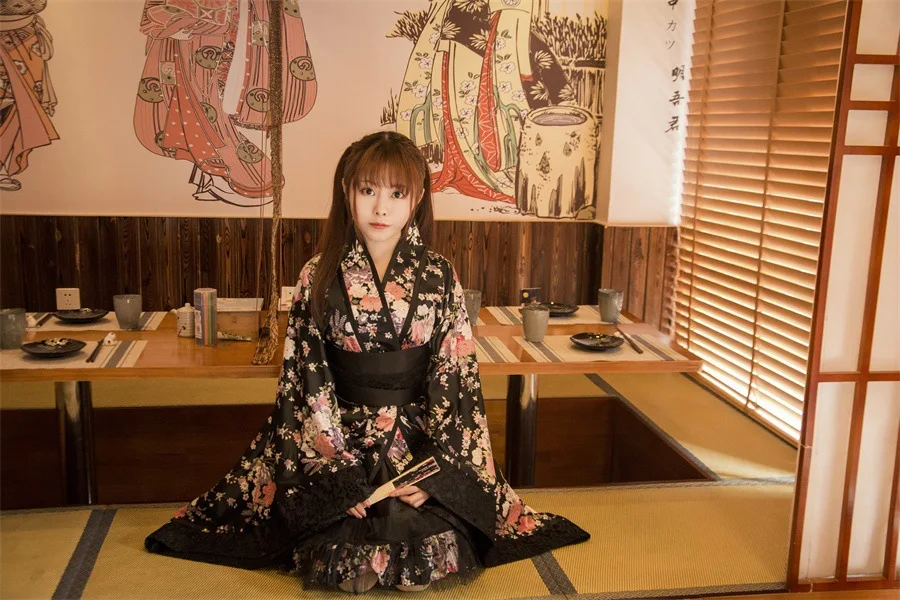 Аниме Косплей GokuRakuJoudo танцевальное улучшенное кимоно платье горничной лолиты милая девушка сценическое представление розовый цветок кавайный костюм