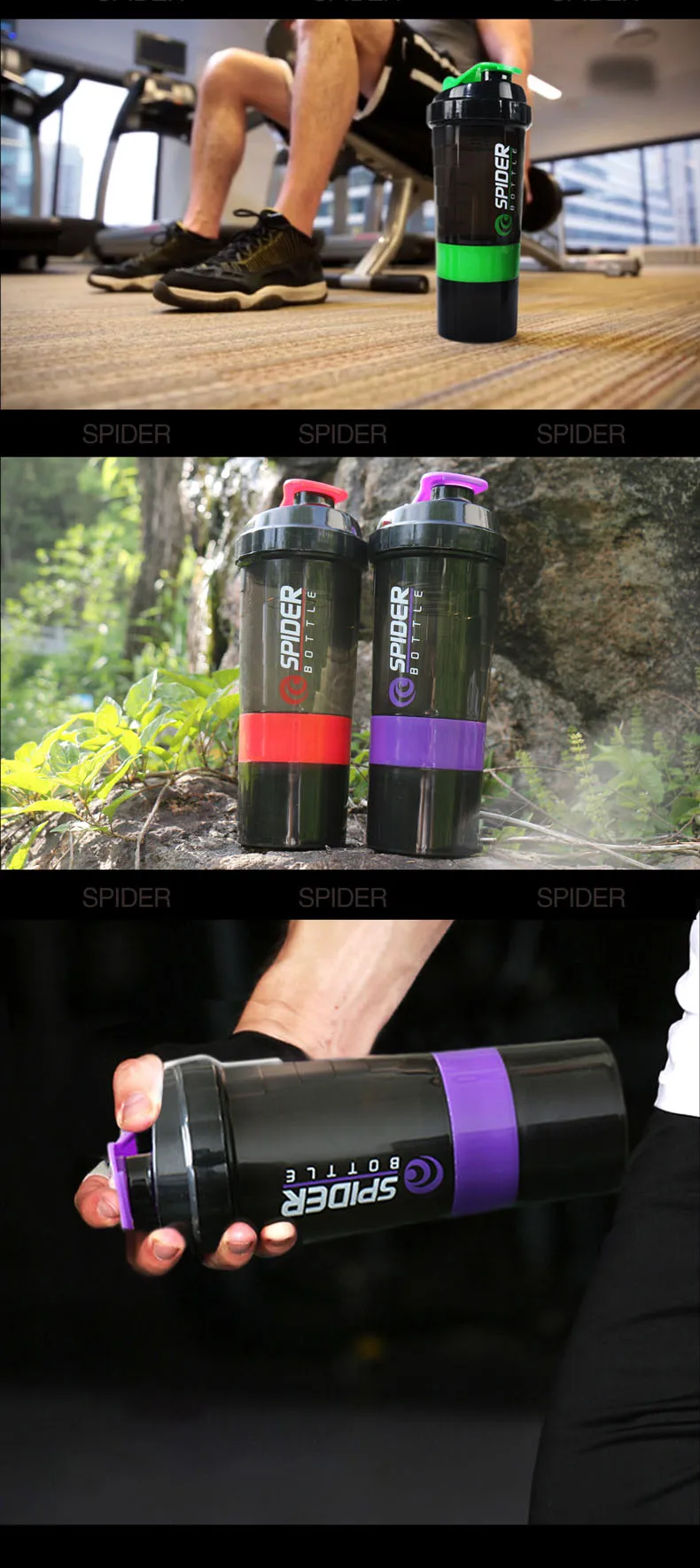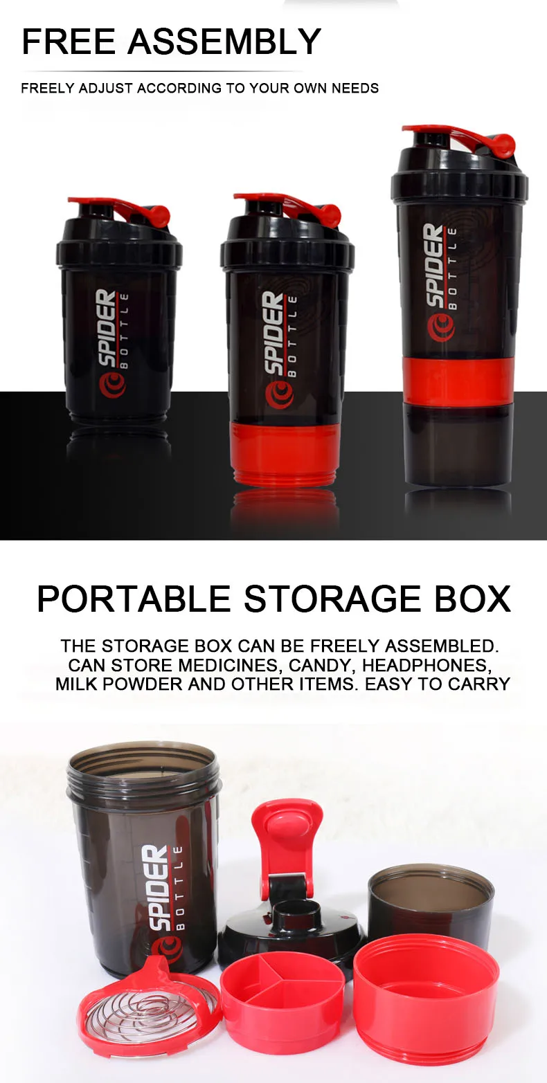 Шейкер для протеинового порошка, бутылка для воды с трехслойным портативным тренажерным залом, мощная герметичная