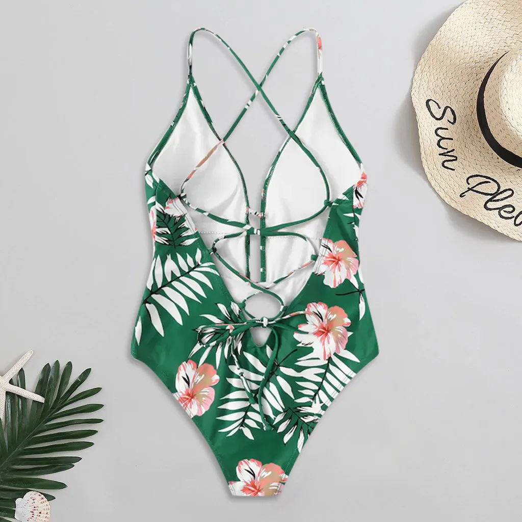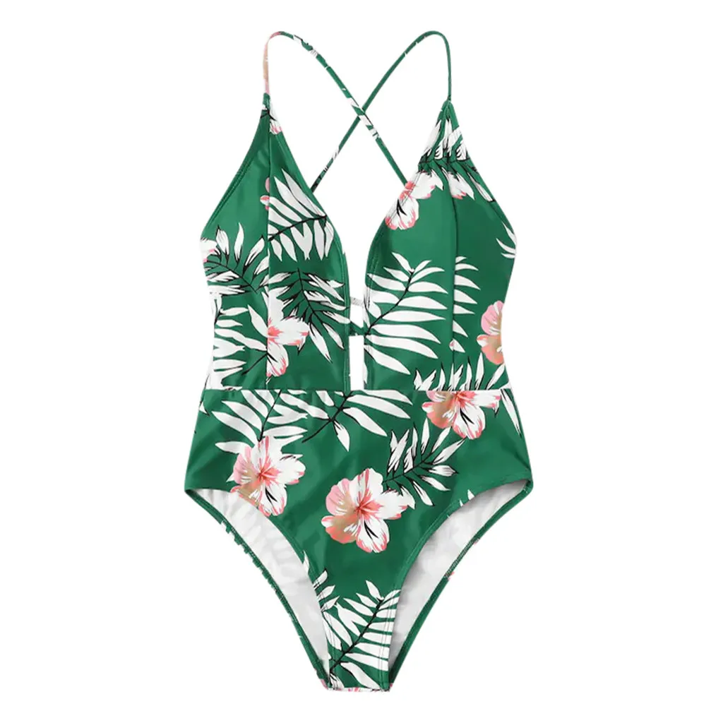 Женский купальник бикини с принтом листьев, бандаж, пуш-ап, Мягкий комбинезон, купальник
