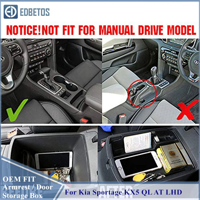 Note: Not For MT Model ( not fit manual car) ! Note: Only For Electronic Hand Brake Model (Left hand drive LHD) Name: Car Storage Box Fitment: For Kia Sportage KX5 QL AT LHD 2016 2017 2018 2019 2020 Color: Black Condition: 100% Brand New Unused (Quality Checked before shipping) Composition: X1 Armrest Container/Pallet Made: Made in China Feature: Made of High quality black ABS plastic , 100% brand new car armrest box glove box. Original size of car design, Direct fit, No modification needed, Easy installation. Keep your armrest storage in a more organized shape.No slip tray liners prevent items from sliding in tray. Quality Guaranteed, Warranty* Offered. Great Value For Money Solution. Instruction: This item doesn't come with manual installation. Package includes: 1 X Armrest Secondary Storage Box