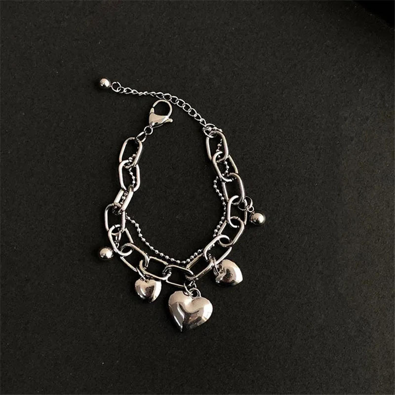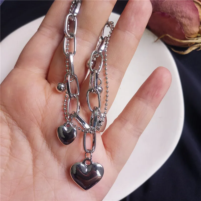Браслеты с кулоном в виде сердца для влюбленных в стиле панк, крутые браслеты из титановой стали с резным сердечком для влюбленных, браслет с толстой цепочкой, ювелирные изделия для влюбленных
