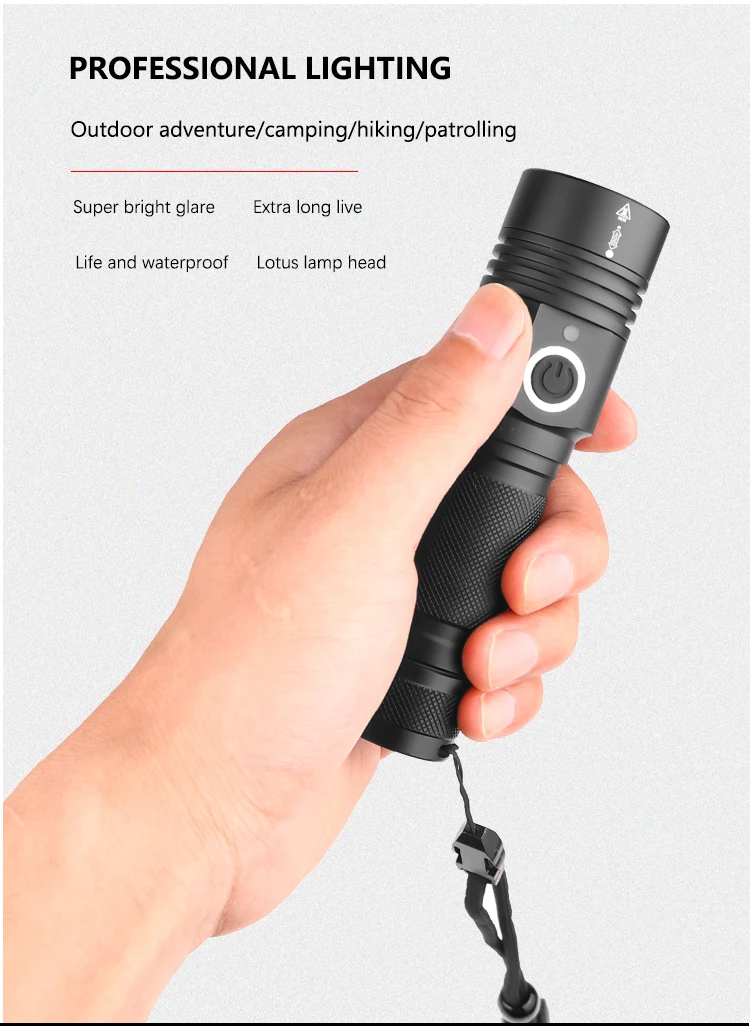 Мощный светодиодный фонарик использует светильник XHP50.2 светодиодный, максимальный выход до 2800 люменов.