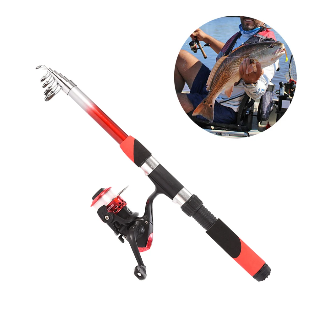 Полный комплект для рыбалки: телескопическая удочка + спиннинговая Рыболовная катушка + чехол для рыболовной сумки + различные рыболовные приманки + рыболовные крючки + некоторые необходимые рыболовные аксессуары.