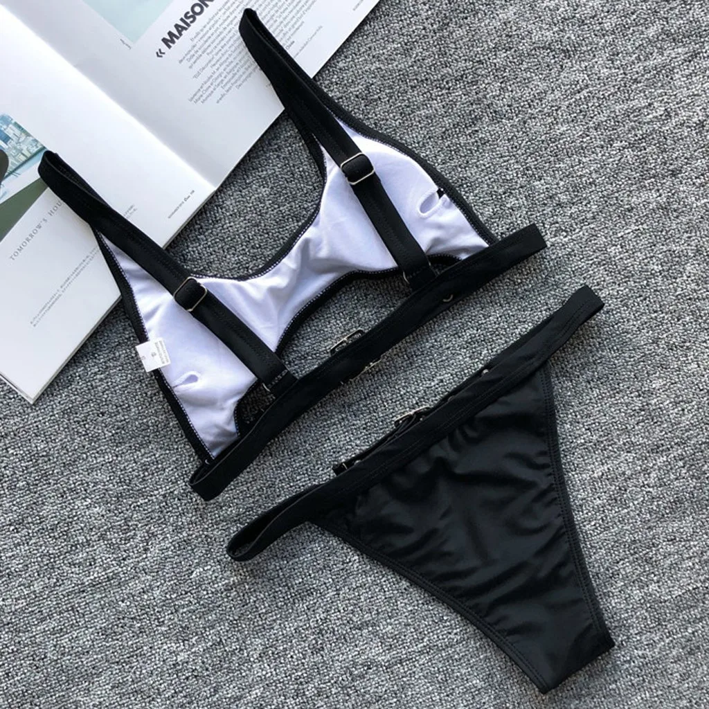 3.ПряжкаЗастежка и lВырез на шее. Традиционный треугольный крой, меньше покрытия, подчеркивает ваш силуэт. Открытая повязка делает вас сексуальным.
