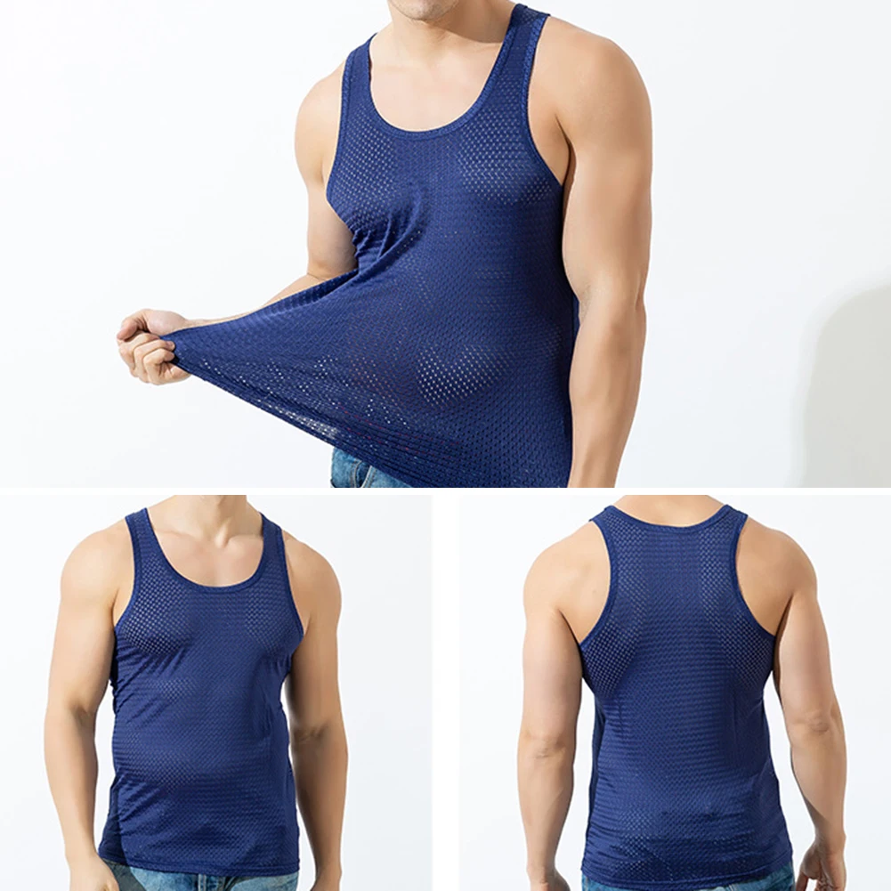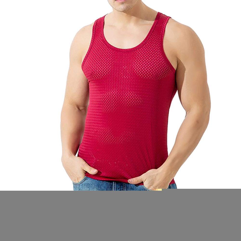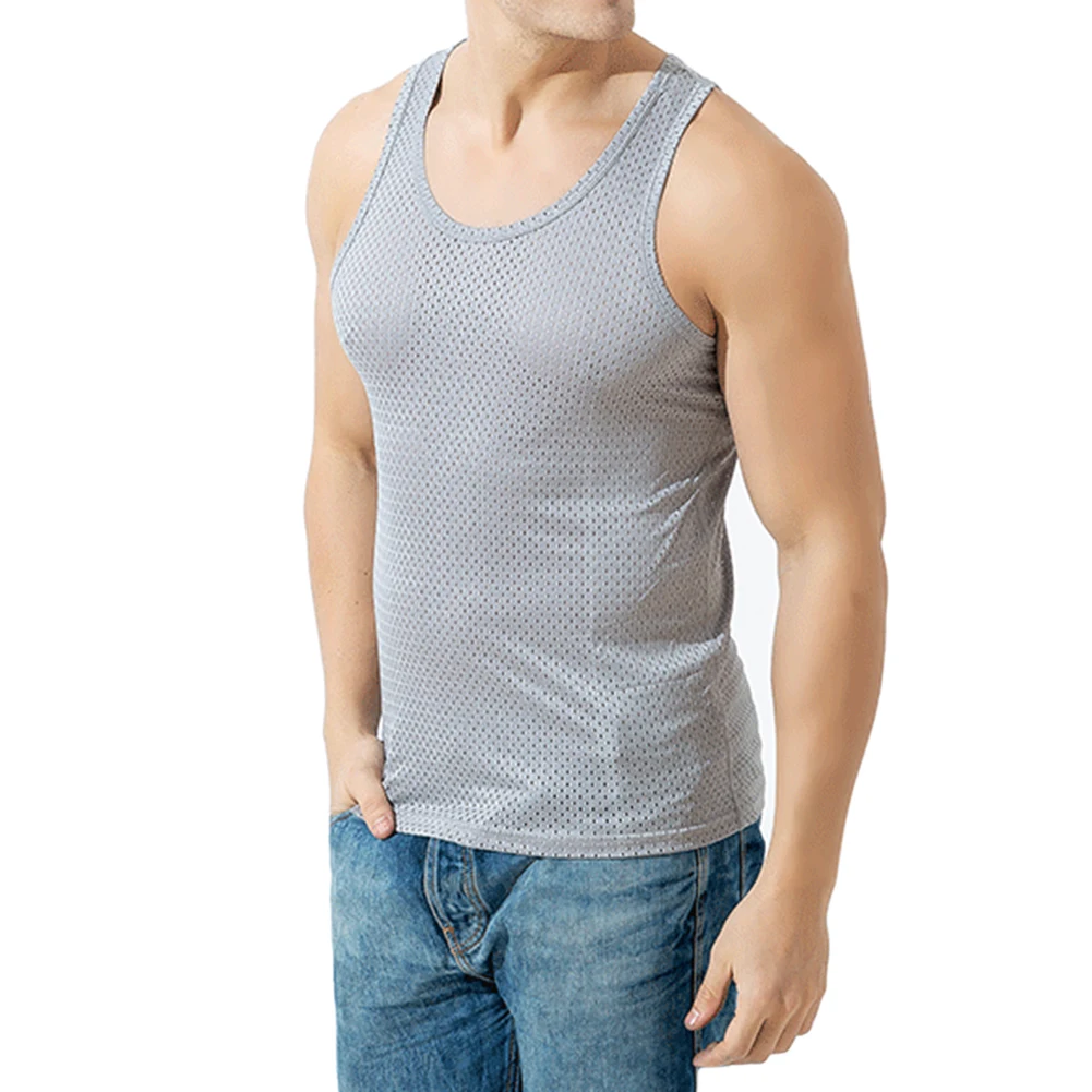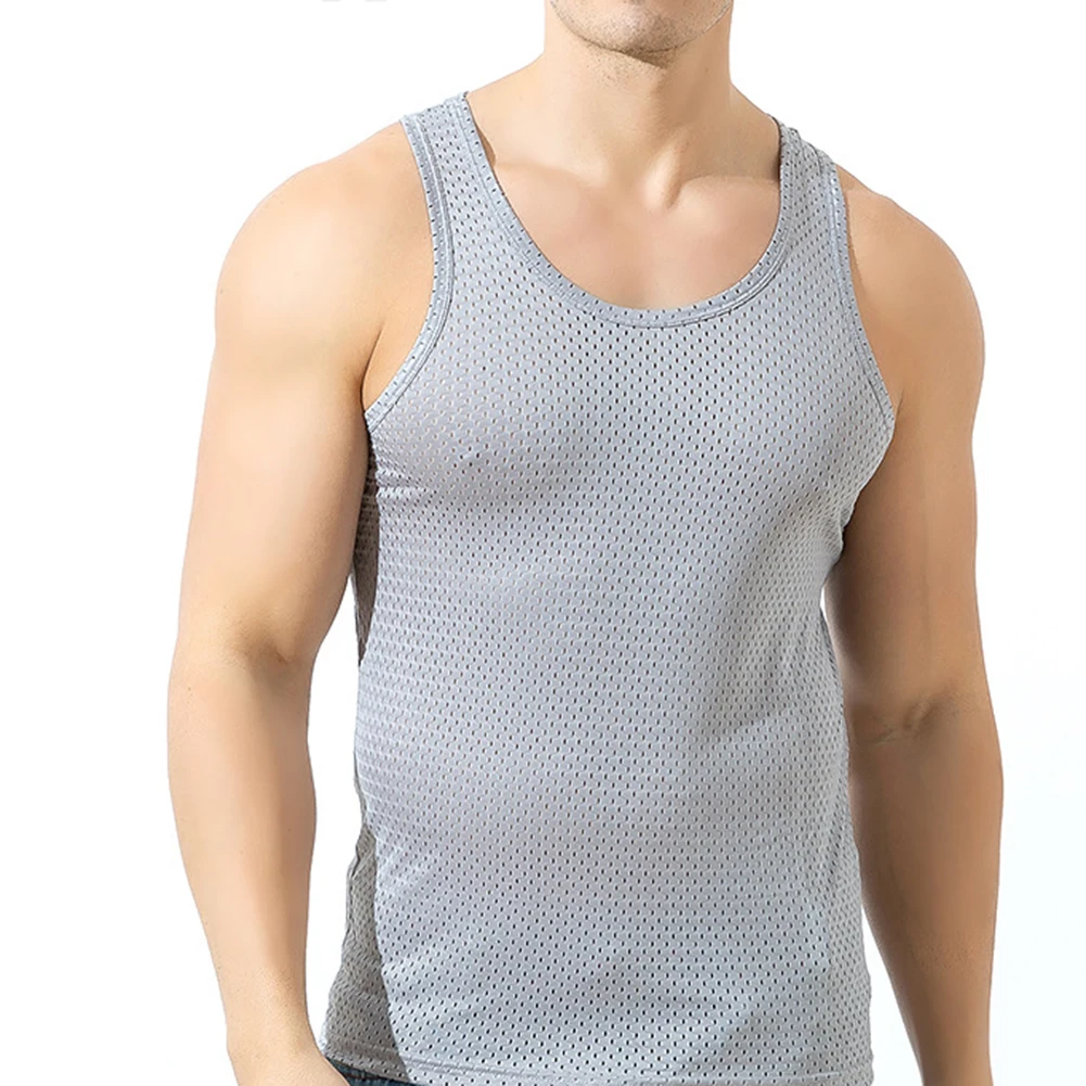 Мужской спортивный жилет без рукавов с круглым вырезом, однотонный сетчатый прозрачный топ, тонкий жилет для тренировок