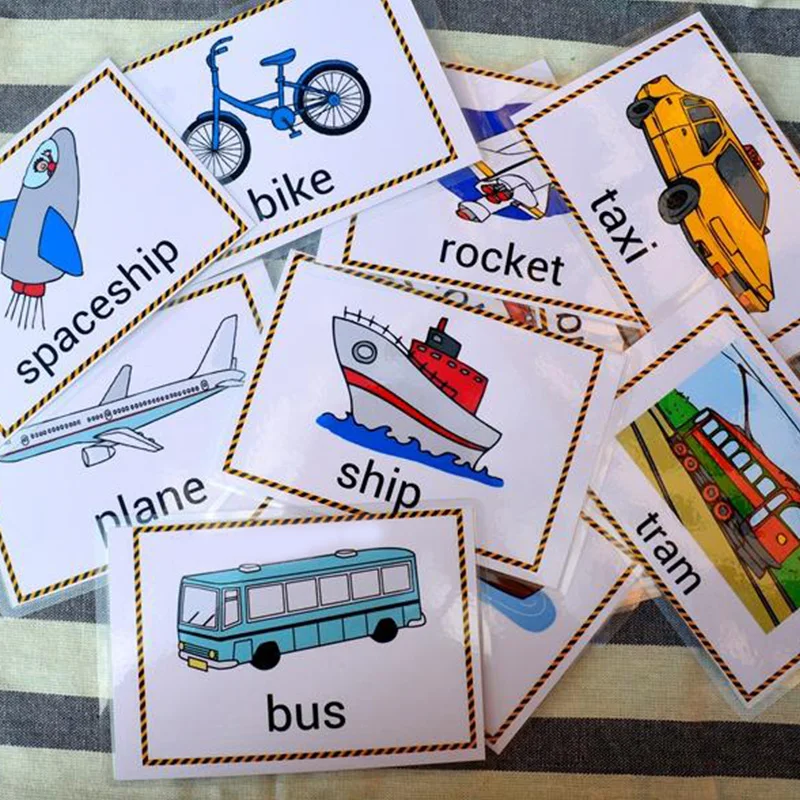22 шт., дорожные инструменты, английские слова, карты для детей, автобус, велосипед, самолет, раннее обучение, флеш-карты, детский сад, учительские пособия