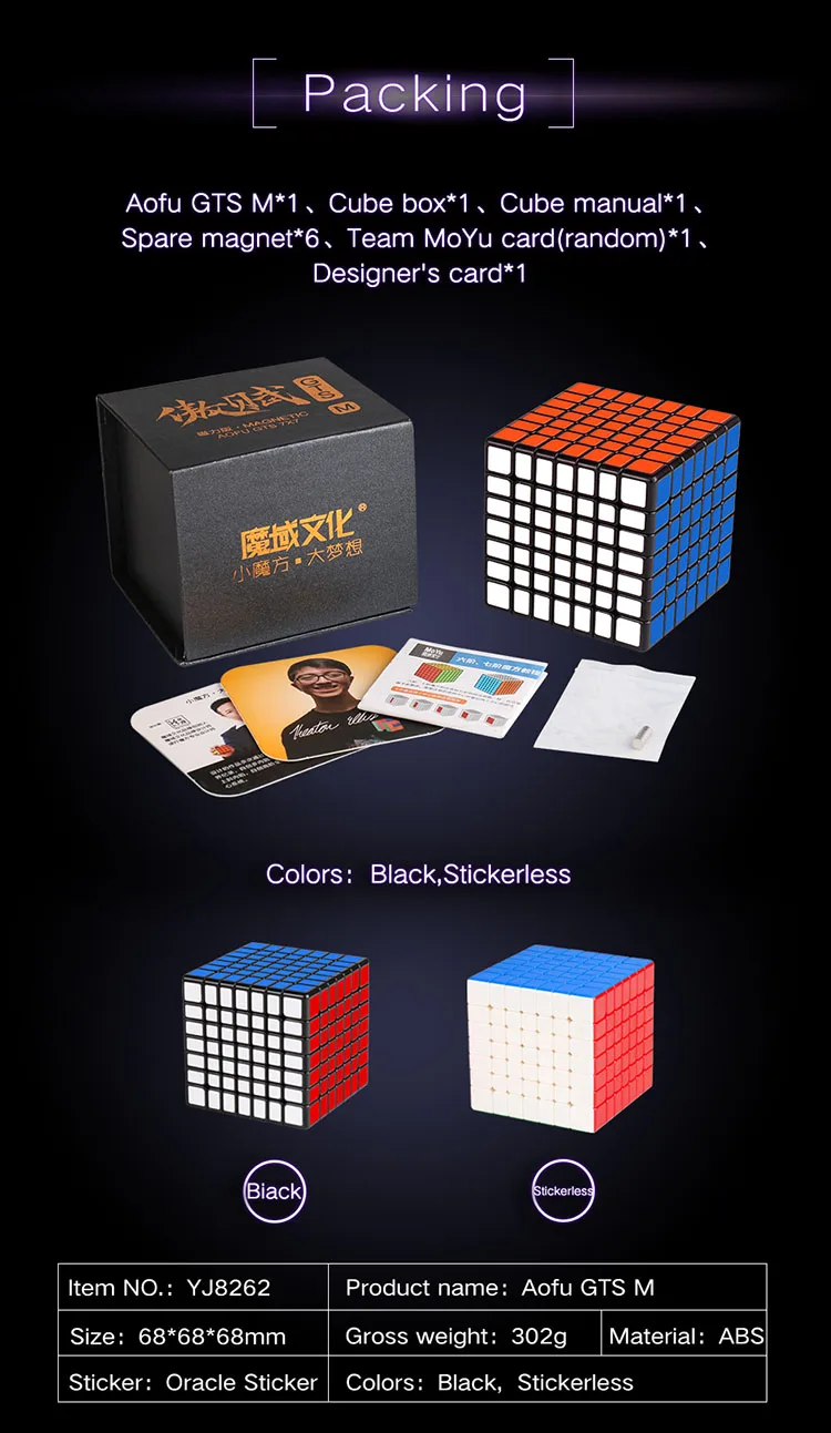. Бренд: Moyu Yuhu . Цвет корпуса: черный/без наклеек . Материал: АБС-пластик . Уровень: 7*7 куб . Упаковка: черный ящик