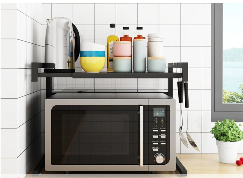 Регулируемая кухонная полка для микроволновой печи, металлическая многофункциональная стойка, двухслойная полка для экономии пространства
