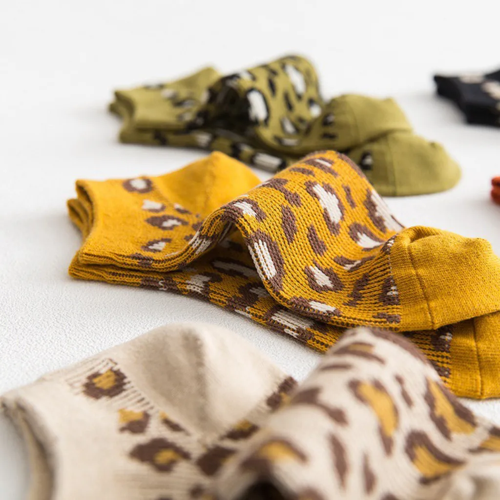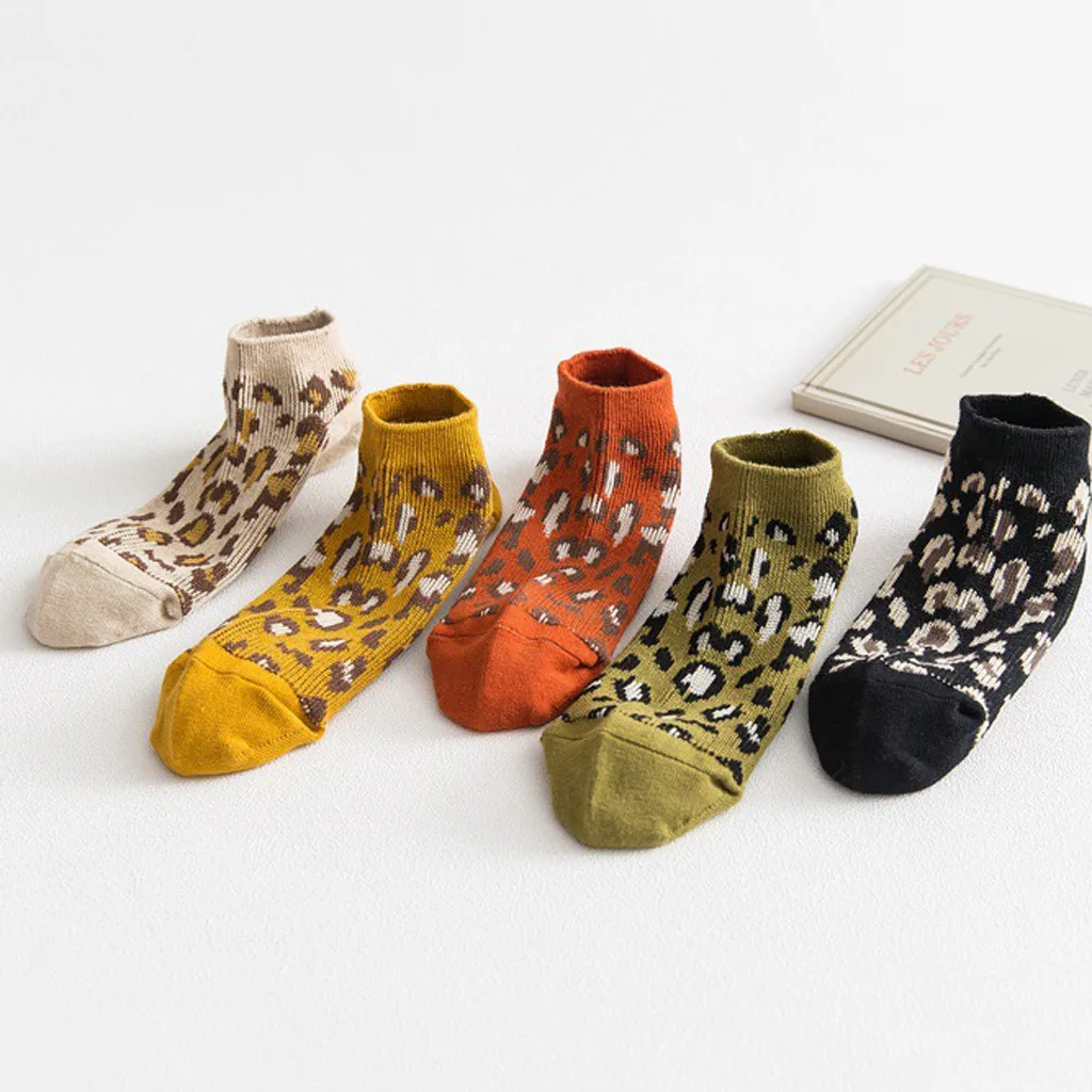 Женские модные носки с леопардовым принтом, хлопковые тонкие носки-башмачки