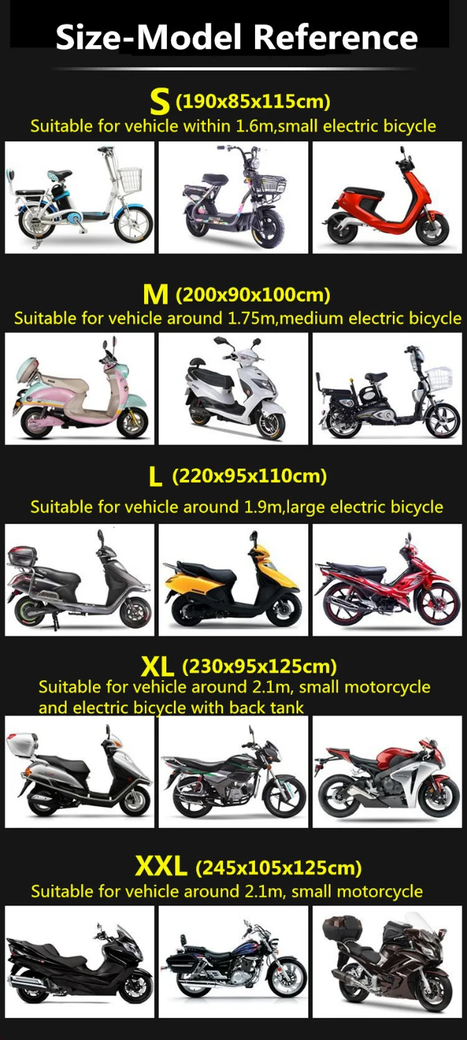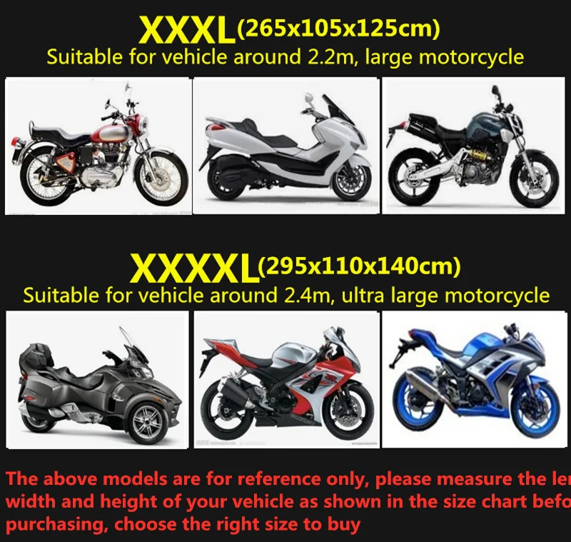 3. Универсальный:У нас есть размер S до размера XXXXL, подходит для большинства видов мотоциклов, а также велосипедов. Подходит для Honda, Suzuki, BMW, Yamaha, Kawasaki, Honda и т. д. велосипедов, таких как MTB, дорожные велосипеды и т. д., также подходит для скутеров, электронных велосипедов и многого другого.
