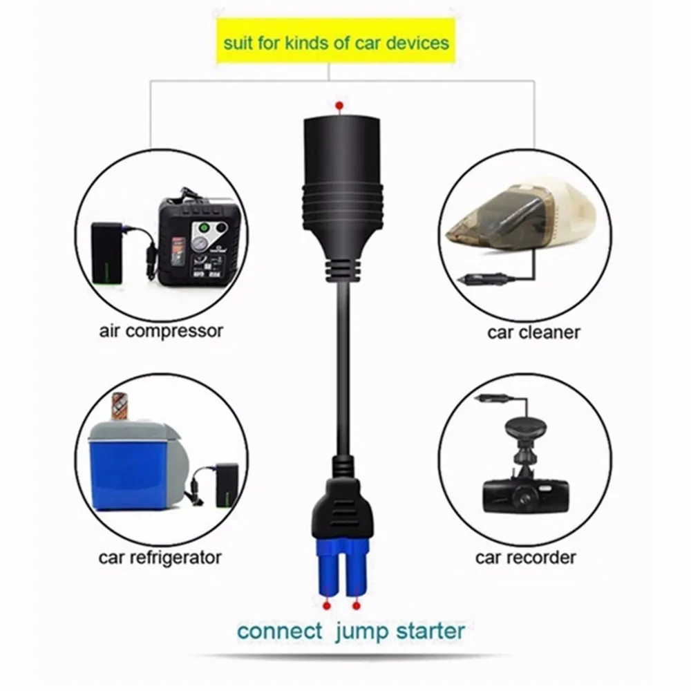 Features: Connect the battery and charger Easy for carrying and installing. Durable and well-priced. Product Details: Color: Black Case Material: ABS Flame Retardant Plastic Metal: Nickel Plated Size: 19cm x 3cm x 1cm Weight:38g Package list: Cigarette Lighter Adapter Cable *1