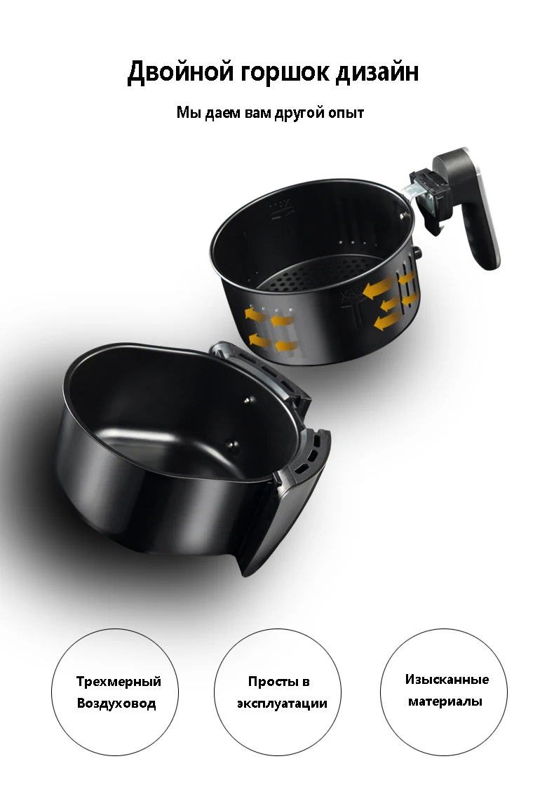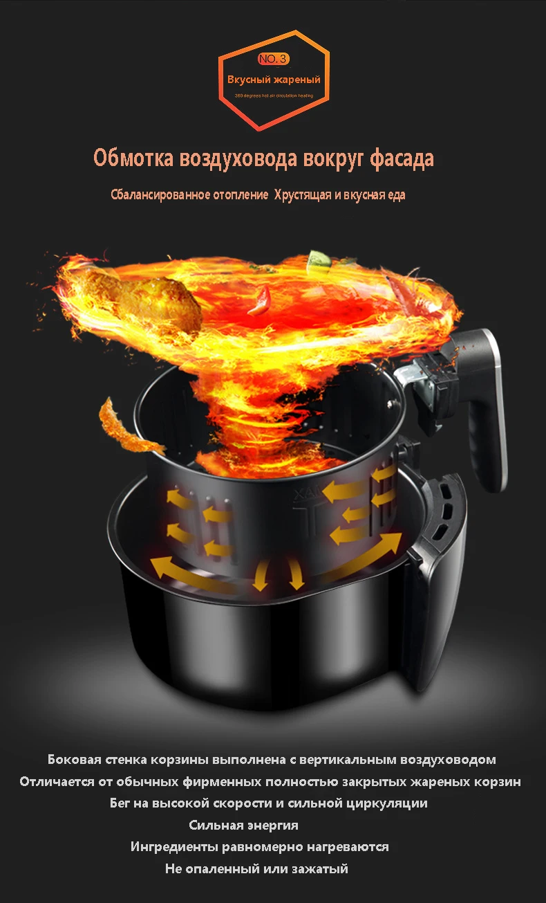 Модный дизайн: Если вы хотите купить товар, пожалуйста, свяжитесь с нами. Ответ 2: Если вы хотите купить товар, пожалуйста, свяжитесь с нами. Третий шаг: специальная текстура в нижней части корзины для продуктов образует вихревой тепловой поток, который соприкасается с поверхностью продукта на 360 градусов во всех направлениях, быстро отводя водяные пары, образующиеся при нагревании, если вы хотите купить товар, пожалуйста, свяжитесь с нами.
