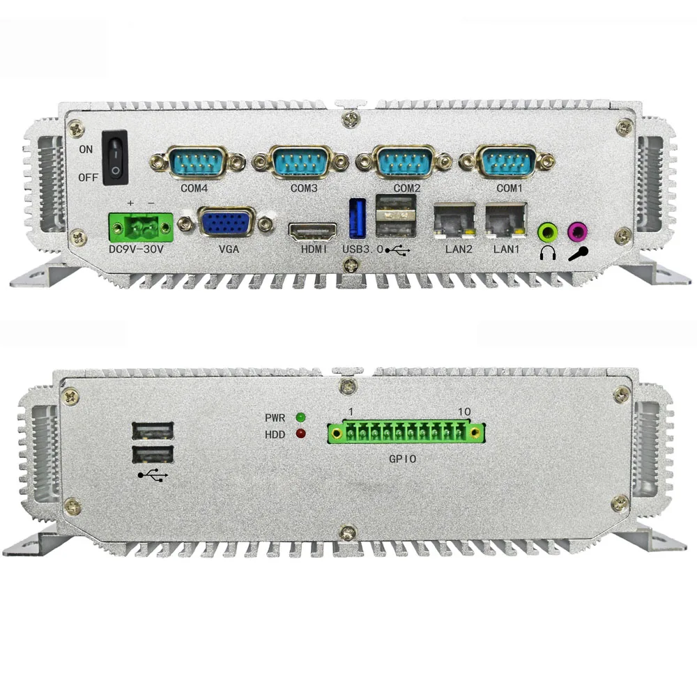 1.Безвентиляторный промышленный ПКИзготовлен из матового алюминия в красивой форме, не имеет кабеля, который хорош при ударе, и высокая производительность при низком энергопотреблении, может использоваться в жестких условиях. Он поддерживает беспроводные 3G и WIFI.2. Высокая термостойкость, Многоразовый и легко расширяющийся характеристики, поэтому он широко используется в промышленном контроле, управлении транспортными средствами, контроле окружающей среды, Miliary контроле, сетевой безопасности, цифровых вывесках, дата storge и другие приложения автоматизации.Промышленные мини-ПК Особенности
