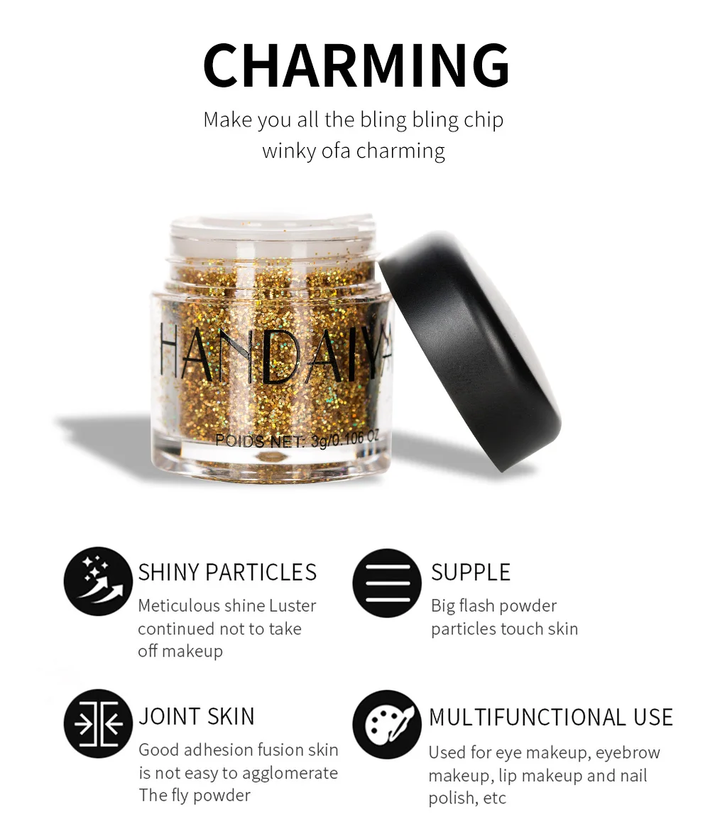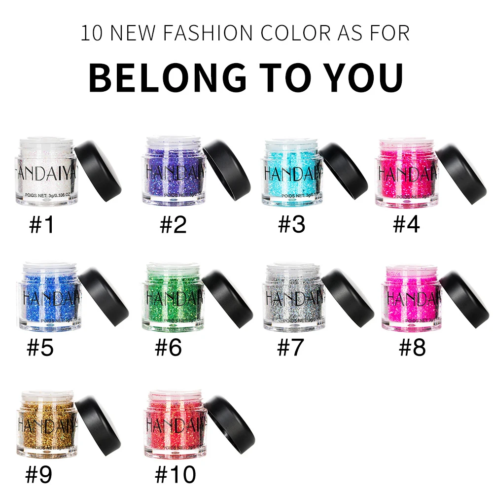 Особенности: 1. 100% Бренд новый высокое качество. 2. Портативный и удобный в использовании, легко смешивать, долго носить, легкий, легко носить с собой. 3. Высококачественные ингредиенты с шелковистым блеском, могут прослужить весь день. 4. Супер яркие жемчужные Сияющие тени для век. 5. Очень пигментированные и яркие, палитры включают мерцающие тени для век и хайлайтер, легко сочетаются с вашим видом. 6. Нет красителя и не образует раздражающие тени для век. 7. Легкий и мягкий, легко создает четкий и блестящий макияж глаз. Детали: Бренд: HANDAIYAN Вес нетто: 3 г Посылка: 50 г Размеры: 3 см * 3 см * 3,2 см Цвет: 10 Цвета Срок годности: 3 года Посылка Содержание: 1 * тени для век (с коробкой) Примечания: 1. Пожалуйста, имейте в виду, что цвета товара, который вы получите, могут немного отличаться от изображений на странице товара. Пожалуйста, имейте в виду, что фотографии только для вашей справки, и мы должны сделать цвет фактического продукта в качестве стандарта. 2. Пожалуйста, не используйте для других целей, кроме макияжа. 3. Пожалуйста, не помещайте под прямыми солнечными лучами или при слишком высокой или слишком низкой температуре. 4. Хранить в недоступном для детей месте.