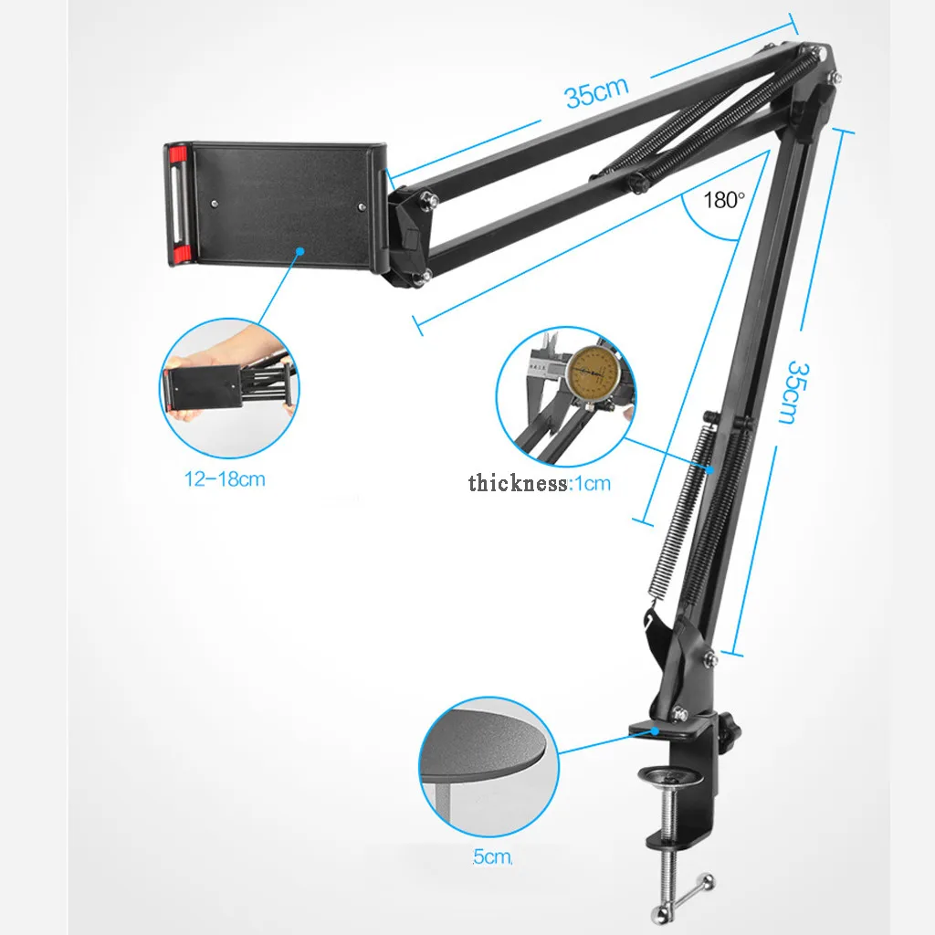 Широко используется во многих местах-базовый зажим будет совместим с любой толщины таблицы/платформы. Он прекрасно подходит для любых мест, таких как спальня, диван, офис, кухня, тренажерный зал, ванная комната. Это позволяет выпустить руки, что является очень практичным держателем без застежки.