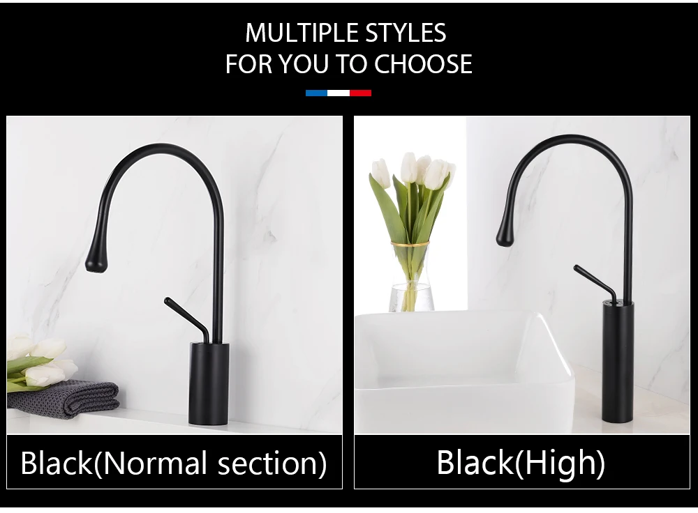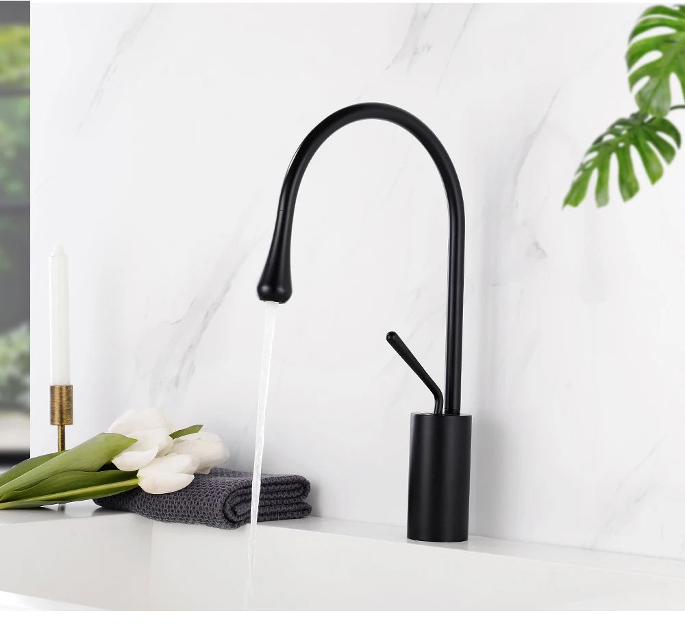 Смесители для ванной комнаты Тщеславие Горячие холодные водяные раковины Смеситель кран для раковины Водопад Ванная комната черный высокий нормальный sectiaon