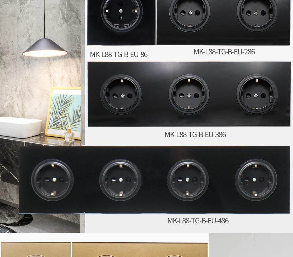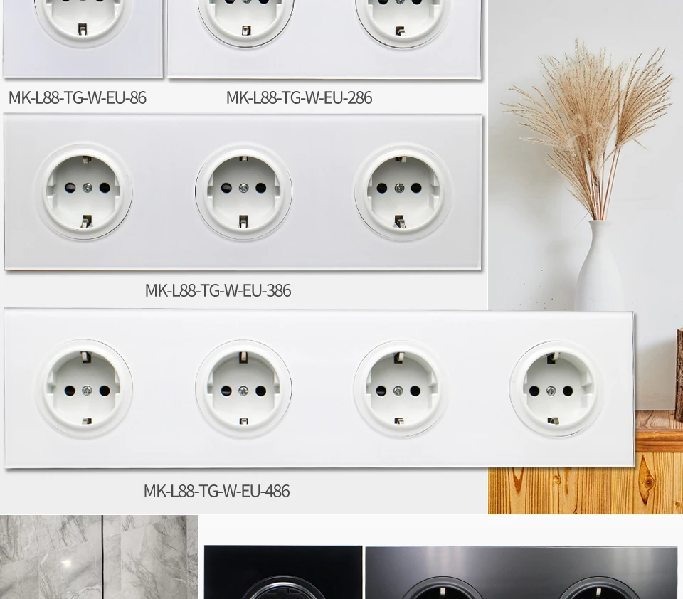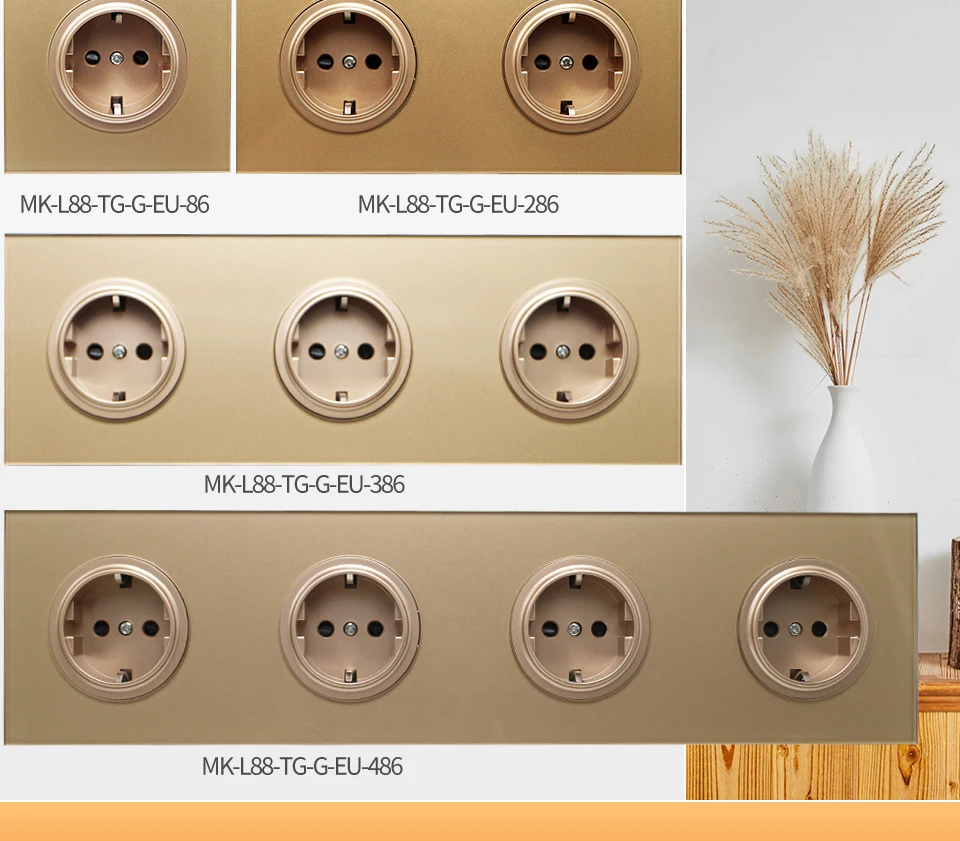 16A настенная розетка из хрустального стекла, многоходовая вилка, заземленная ЕС/де стандарт...