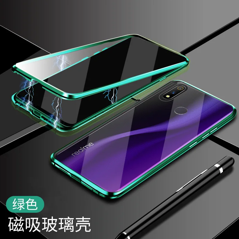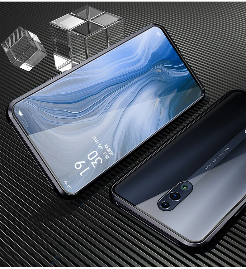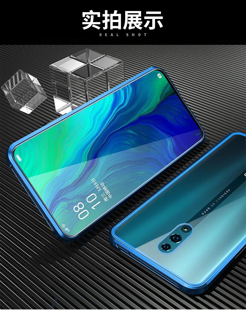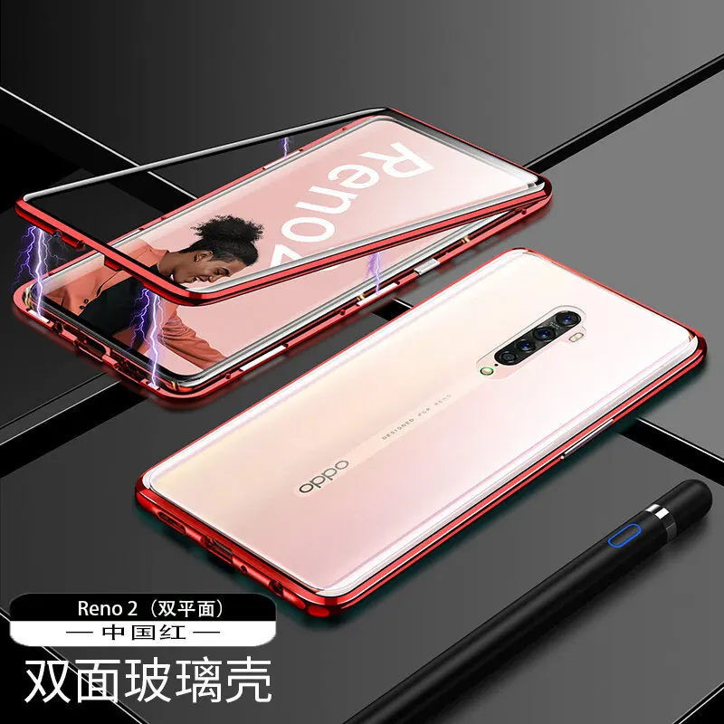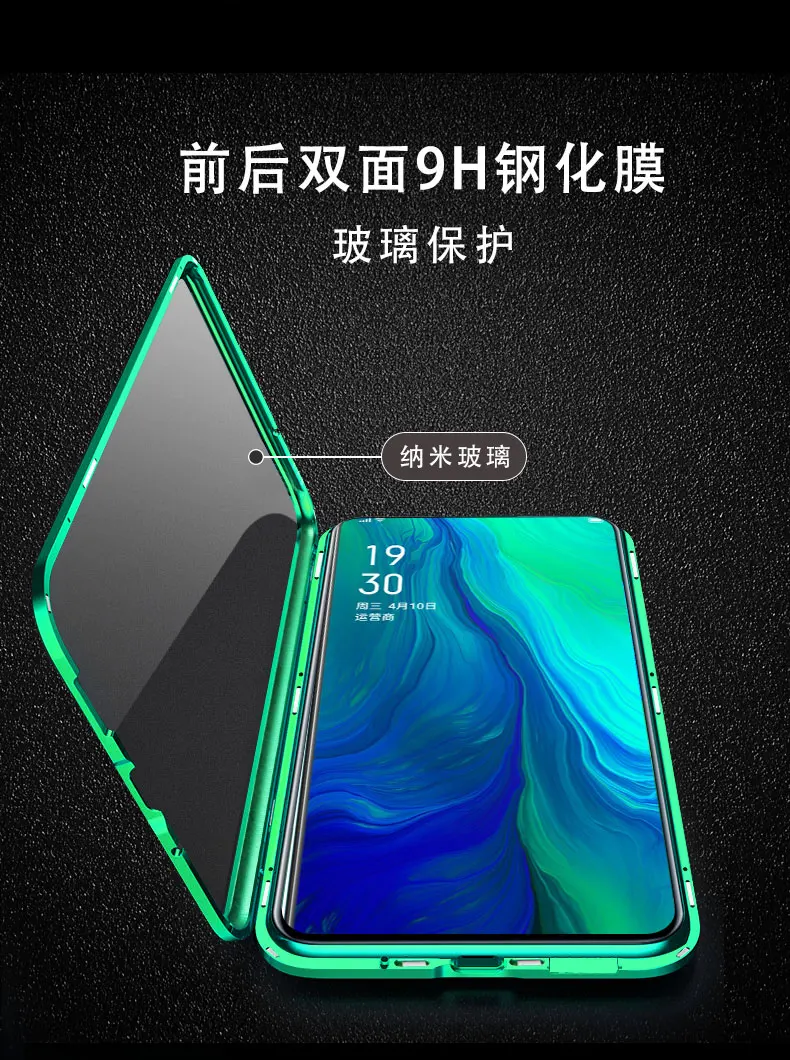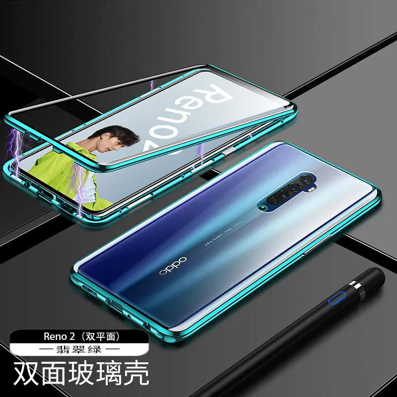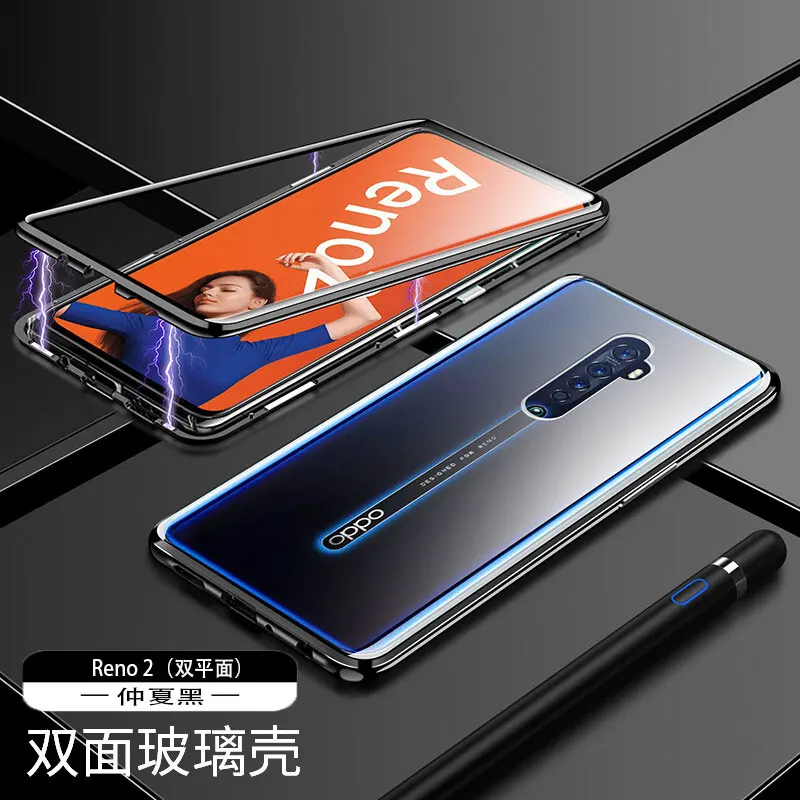 Двухсторонний прозрачный 9H закаленное стекло Магнитный адсорбционный чехол для телефона для OPPO Роскошный металлический бампер 360 градусов полный защитный чехол